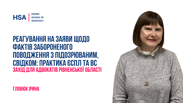Посилання для реєстрації: https://www.hsa.org.ua/reaguvannia-na-zaiavi-shhodo-faktiv-zaboronenogo-povodzennia-z-pidozriuvanim-svidkom-praktika-jespl-ta-vs-zaxid-dlia-advokativ-rivnenskoyi-oblasti