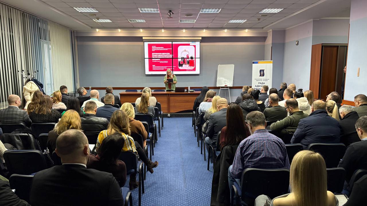 28.11.2025 року Радою адвокатів Рівненської області було проведено захід підвищення професійного рівня адвокатів на тему: «Дотримання адвокатом правил адвокатської етики під час надання правничої допомоги».
