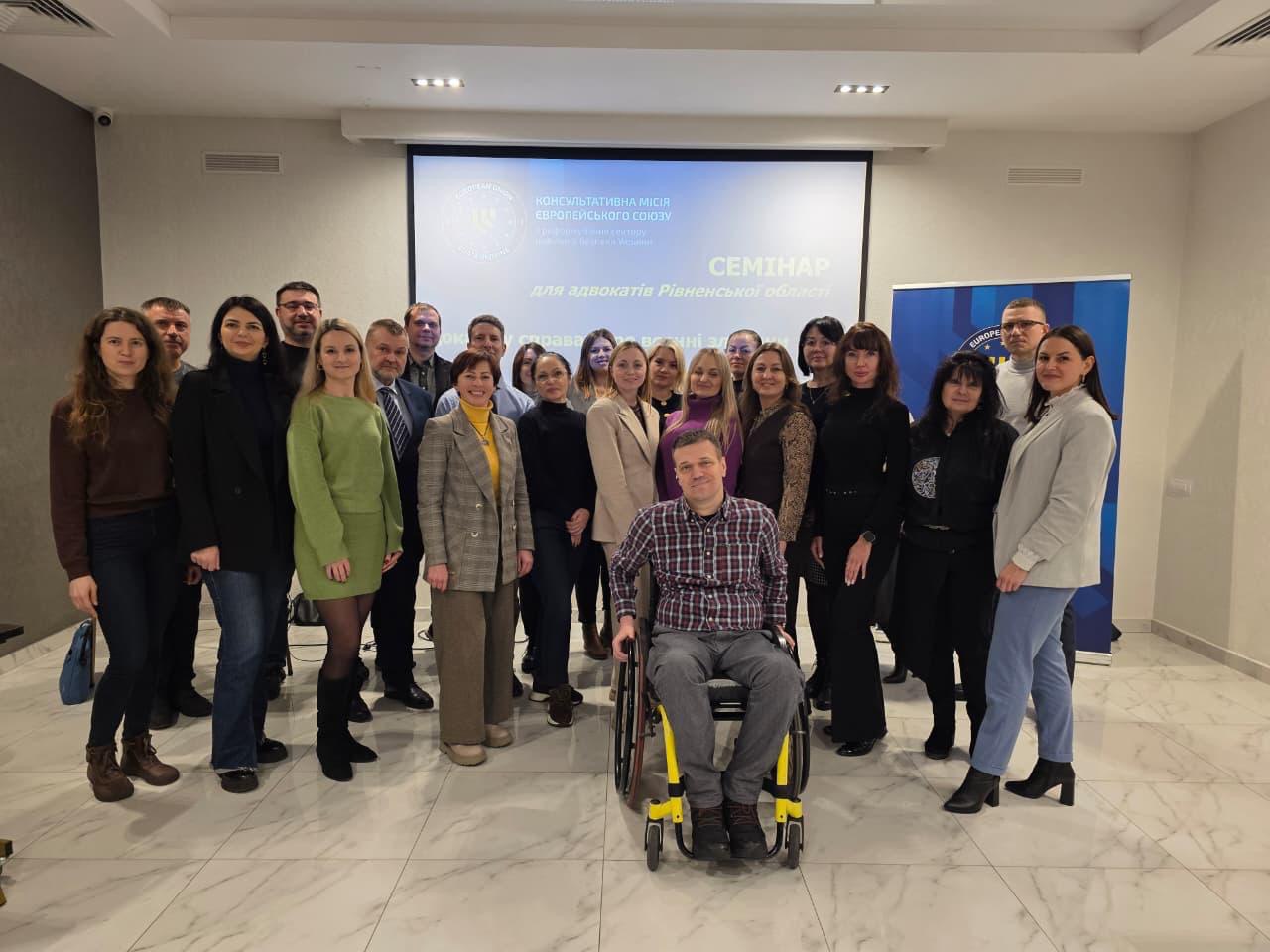 20 листопада 2025 року у Рівному відбувся семінар для адвокатів на тему: «Докази у справах щодо воєнних злочинів», організований Радою адвокатів Рівненської області спільно з Консультативною місією Європейського Союзу з реформування сектору цивільної безпеки в Україні. Учасниками семінару стали адвокати Рівненської області.