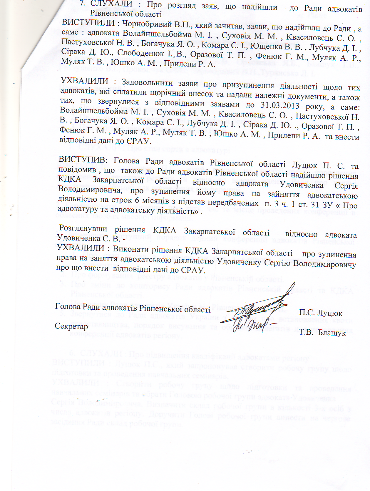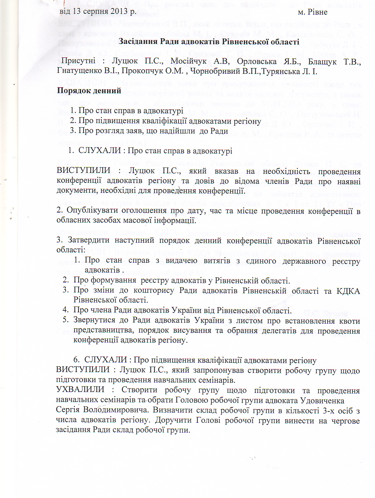 Протокол №4 засідання Ради адвокатів Рівненської області від 13082013