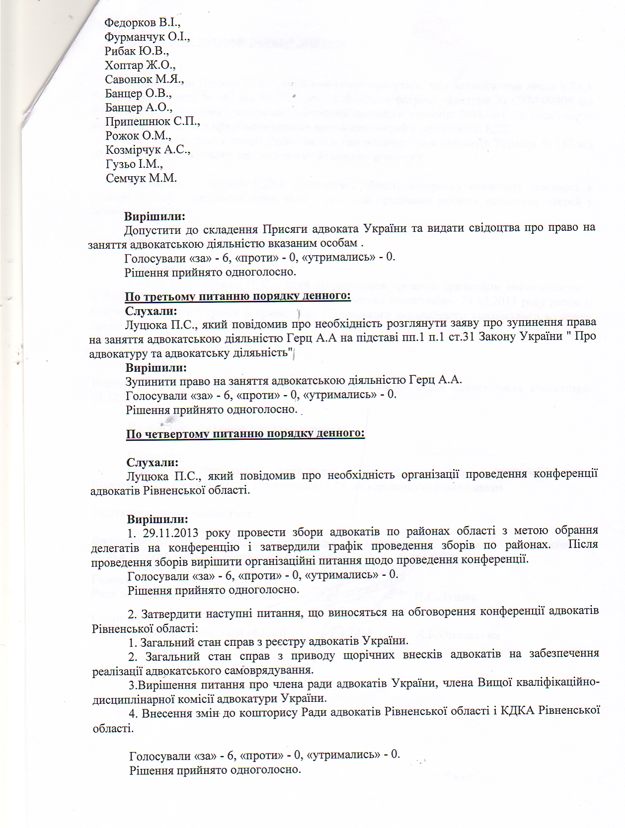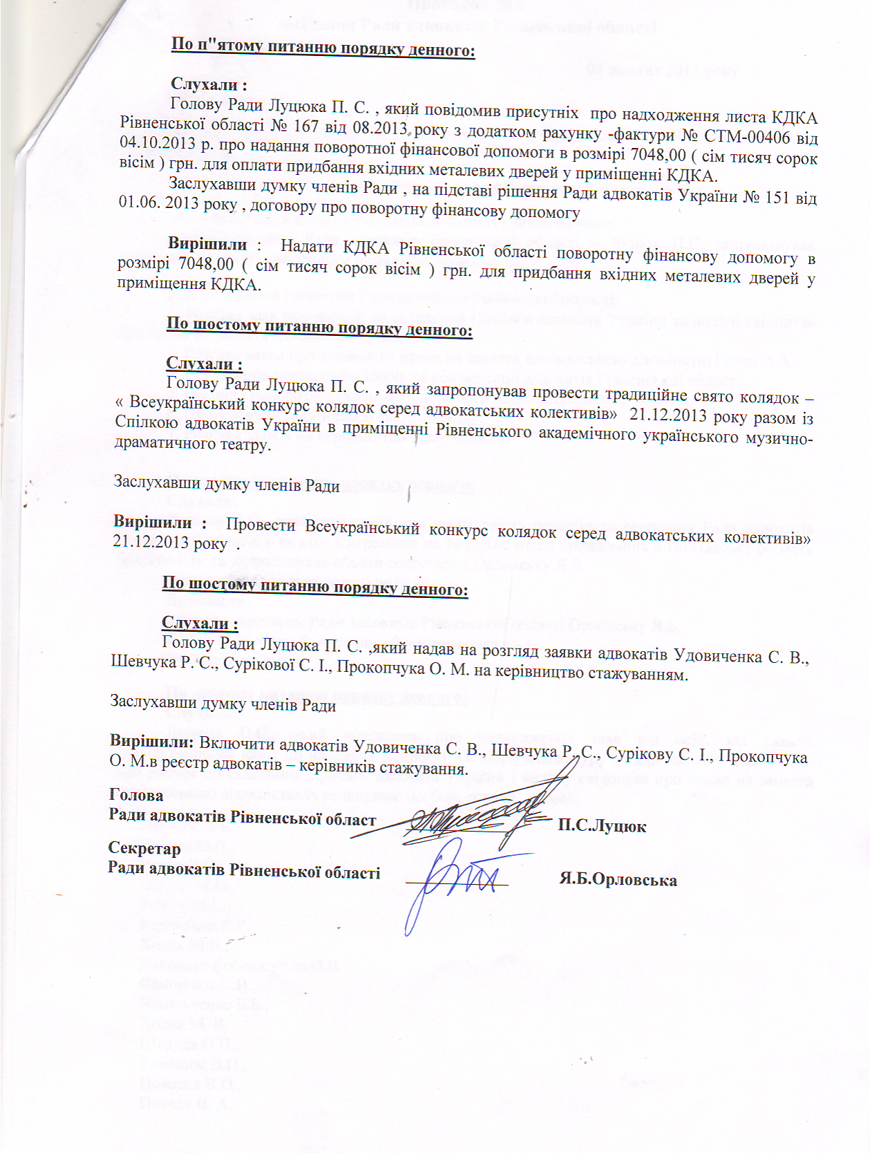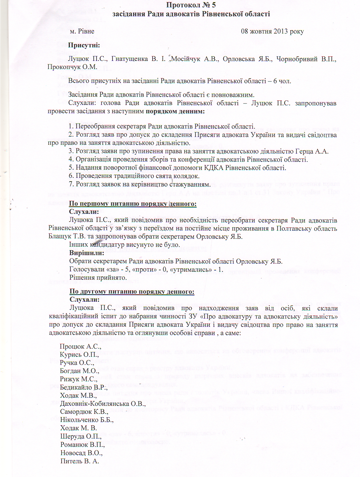 Протокол №5 засідання Ради адвокатів Рівненської області від 08102013