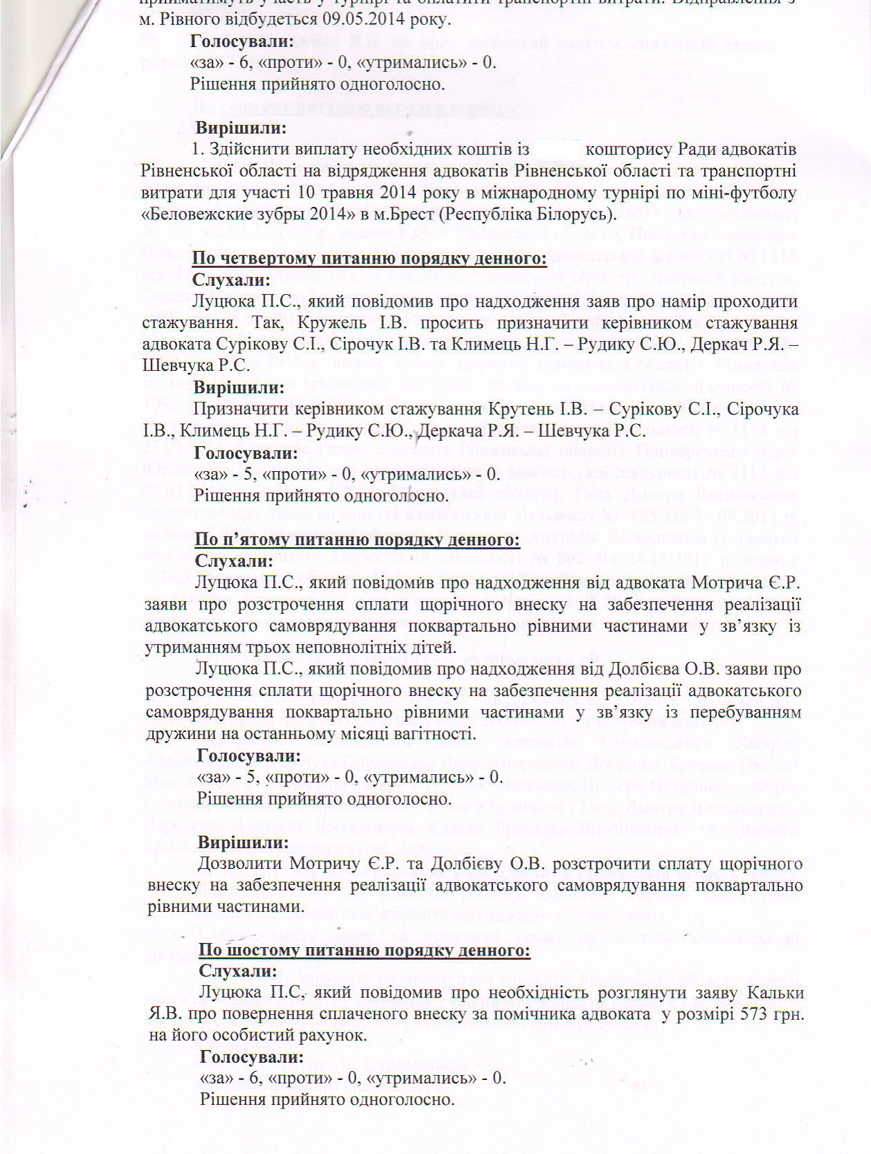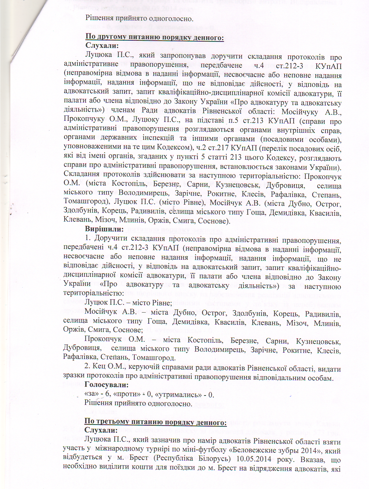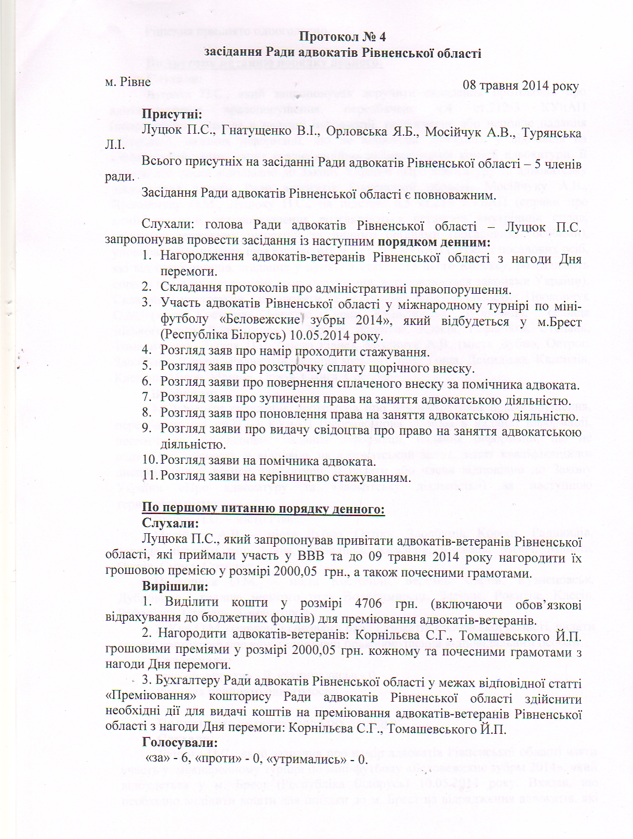 Протокол №4 засідання Ради адвокатів Рівненської області від 08052014