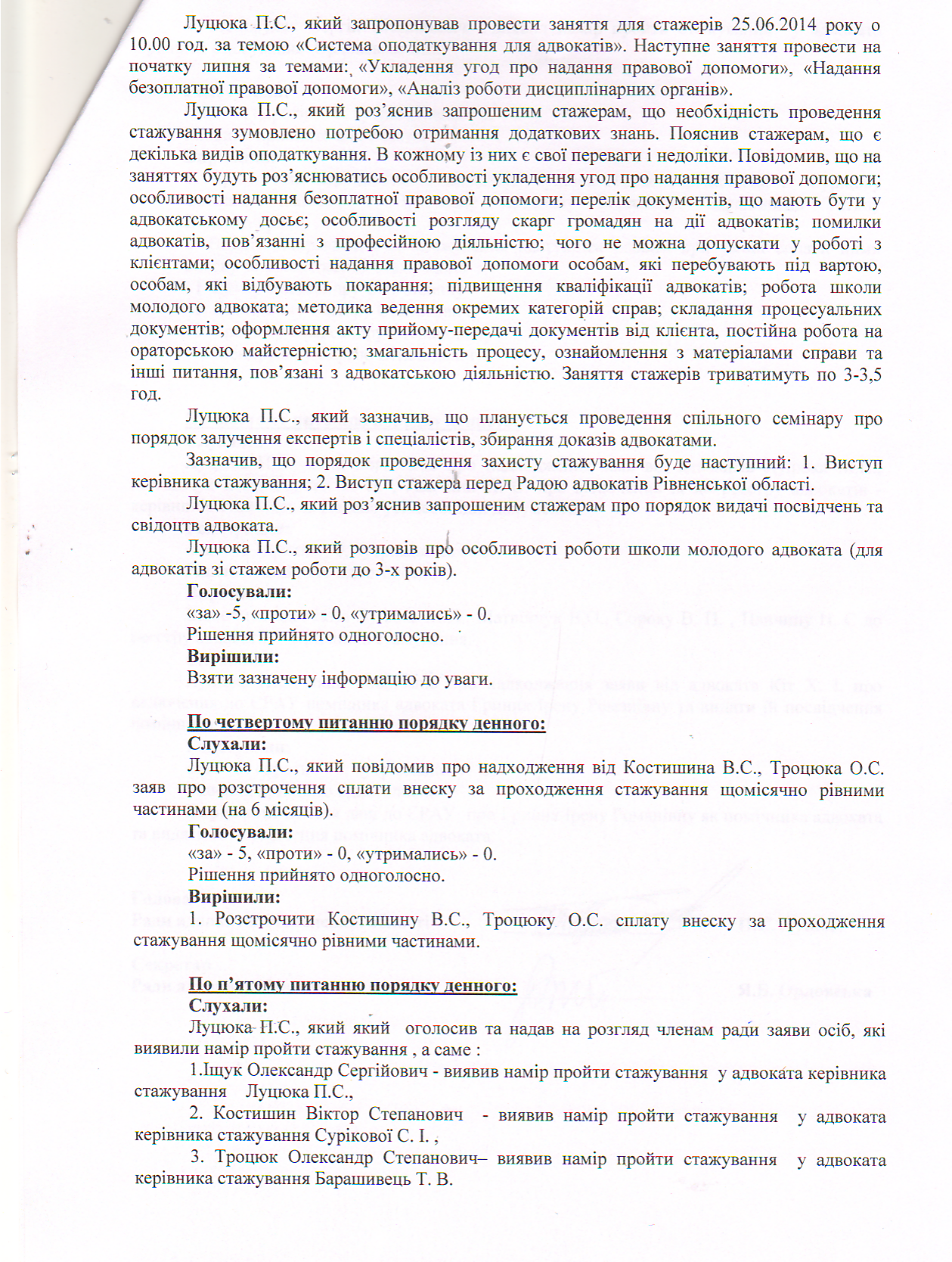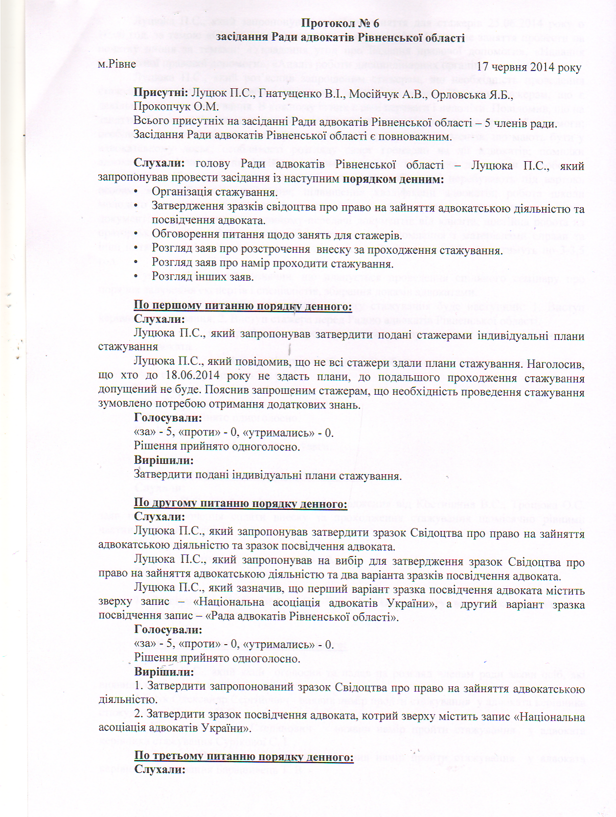 Протокол №6 засідання Ради адвокатів Рівненської області від 17062014