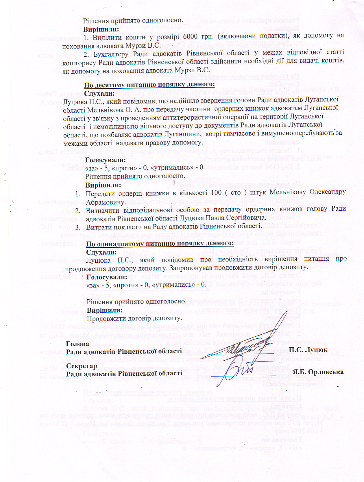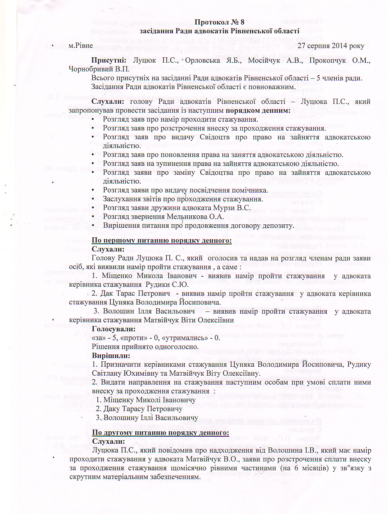Протокол №8 засідання Ради адвокатів Рівненської області від 27082014