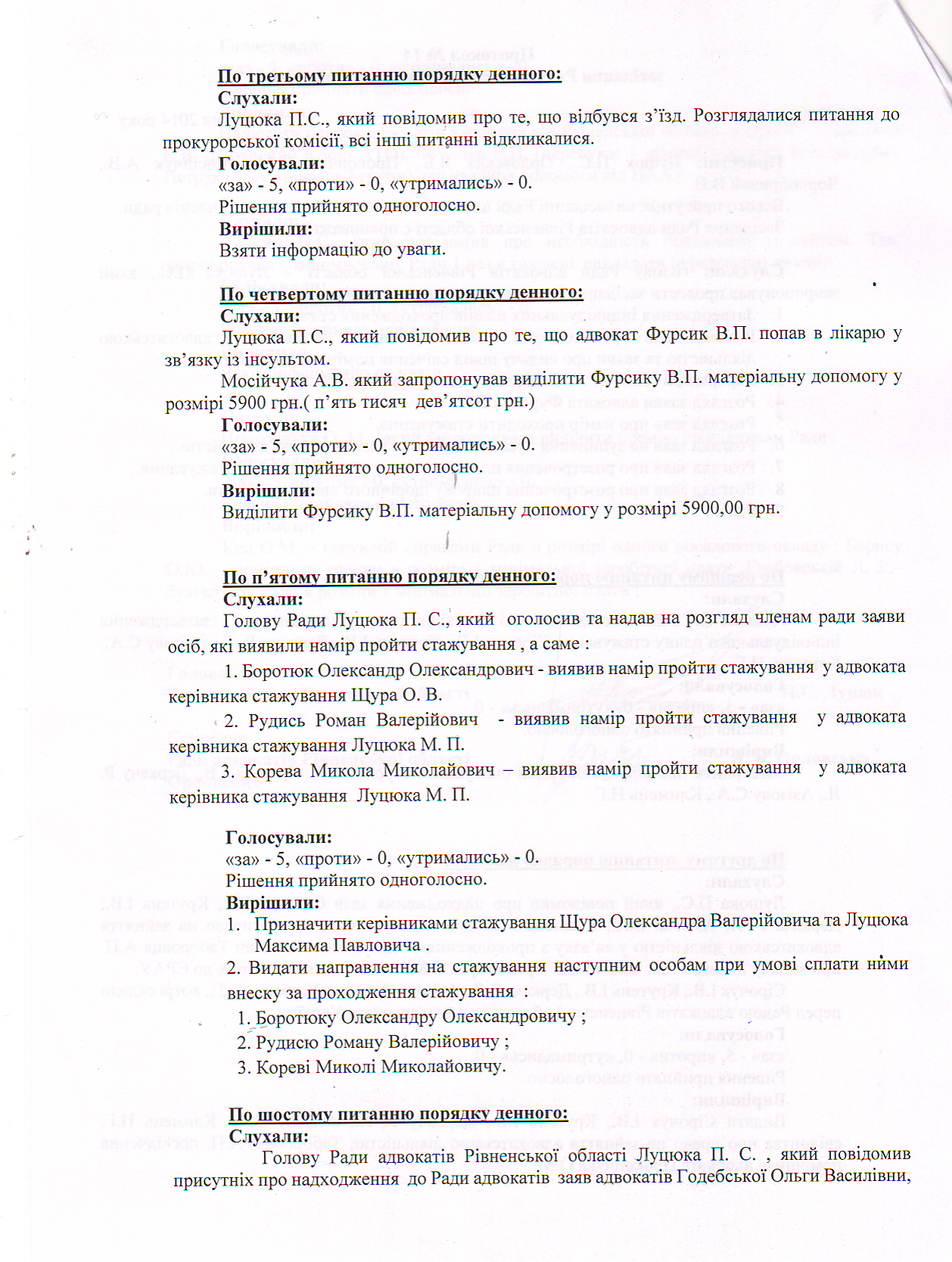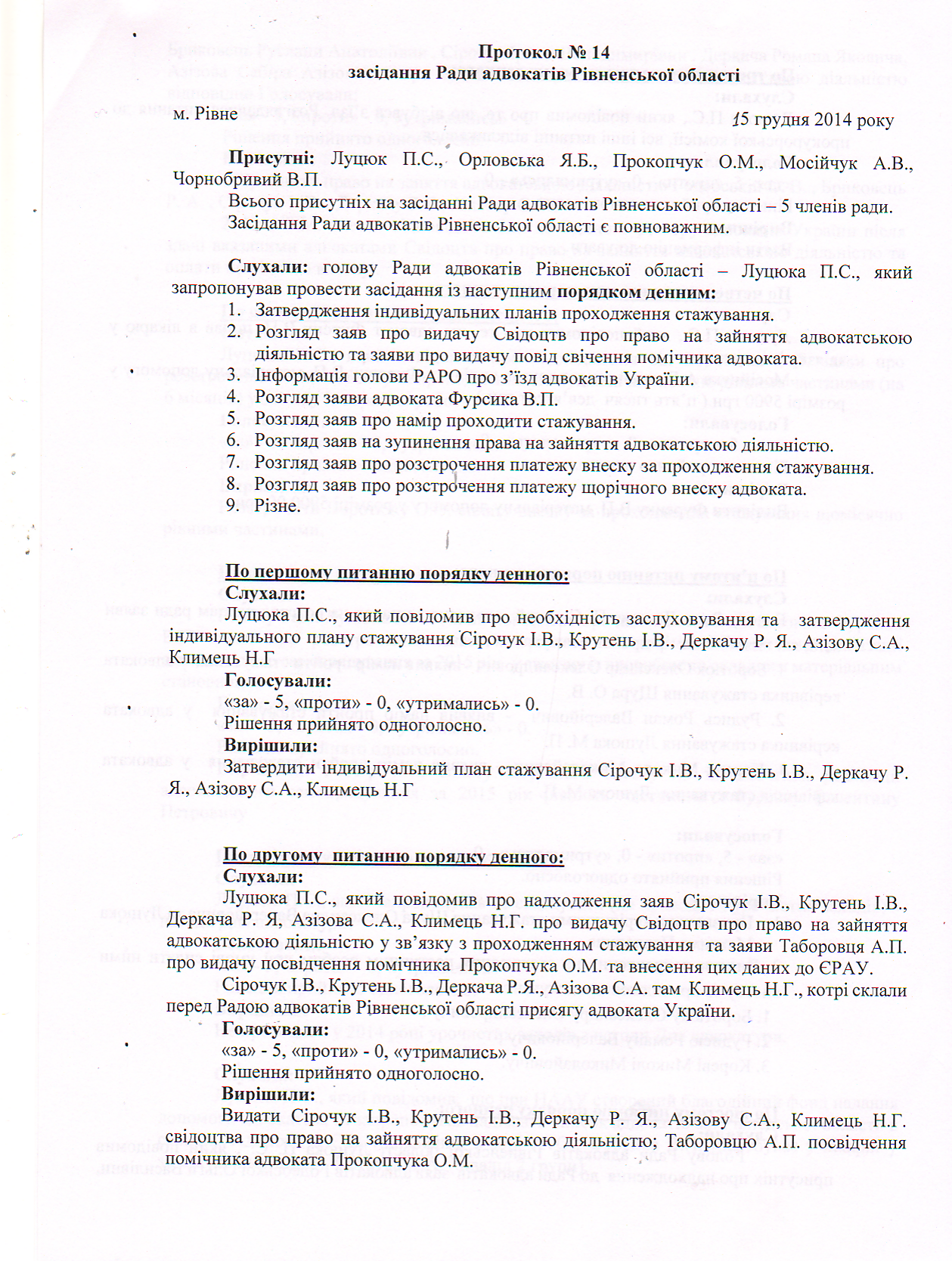 Протокол №14 засідання Ради адвокатів Рівненської області від 15122014