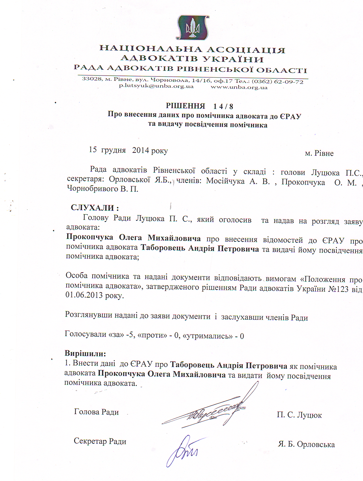 /rishennia/rishennia-rady/134-rishennia-14-8-pro-vnesennia-danykh-pro-pomichnyka-advokata-do-yerau-ta-vydachu-posvidchennia-pomichnyka
