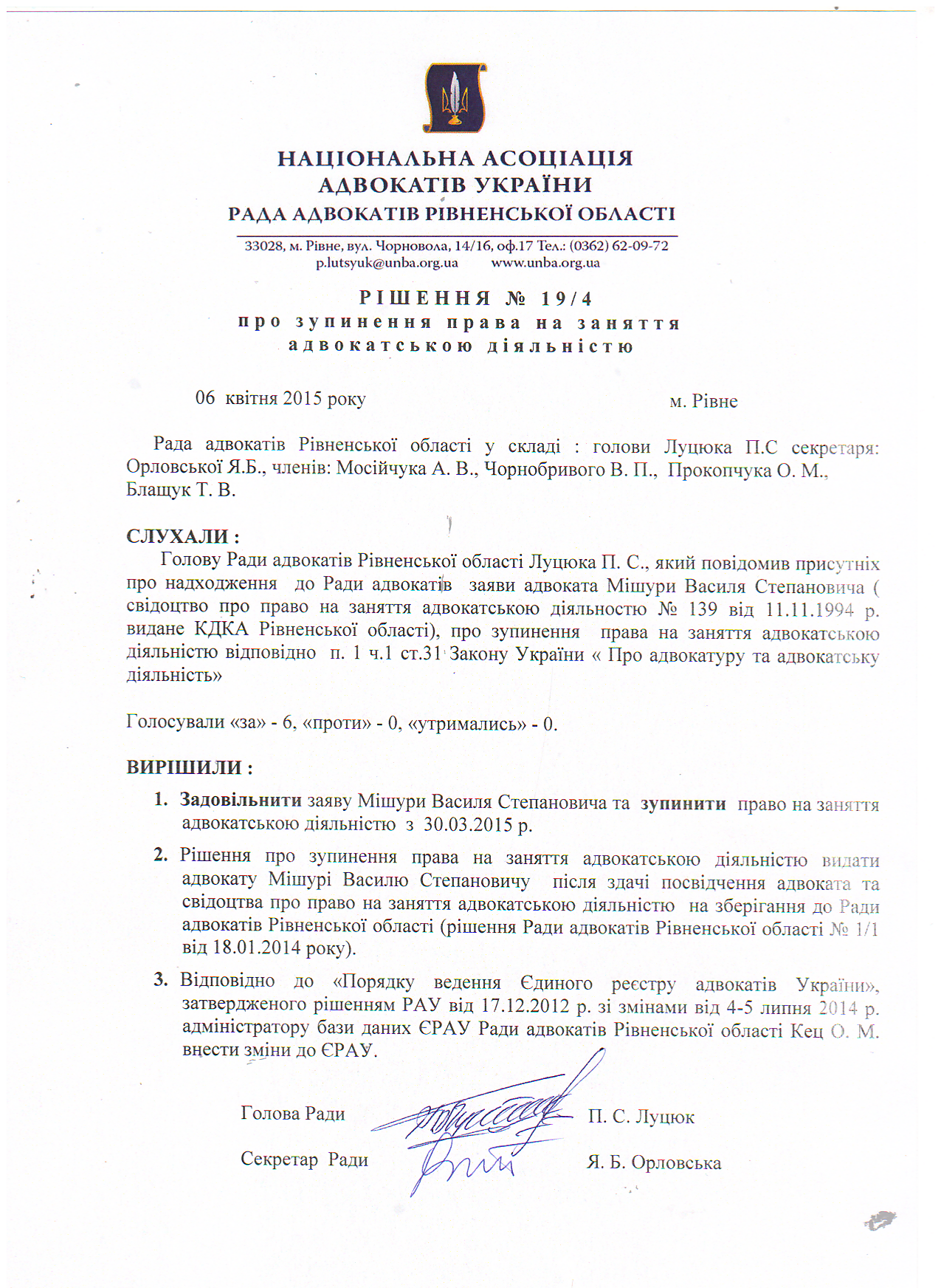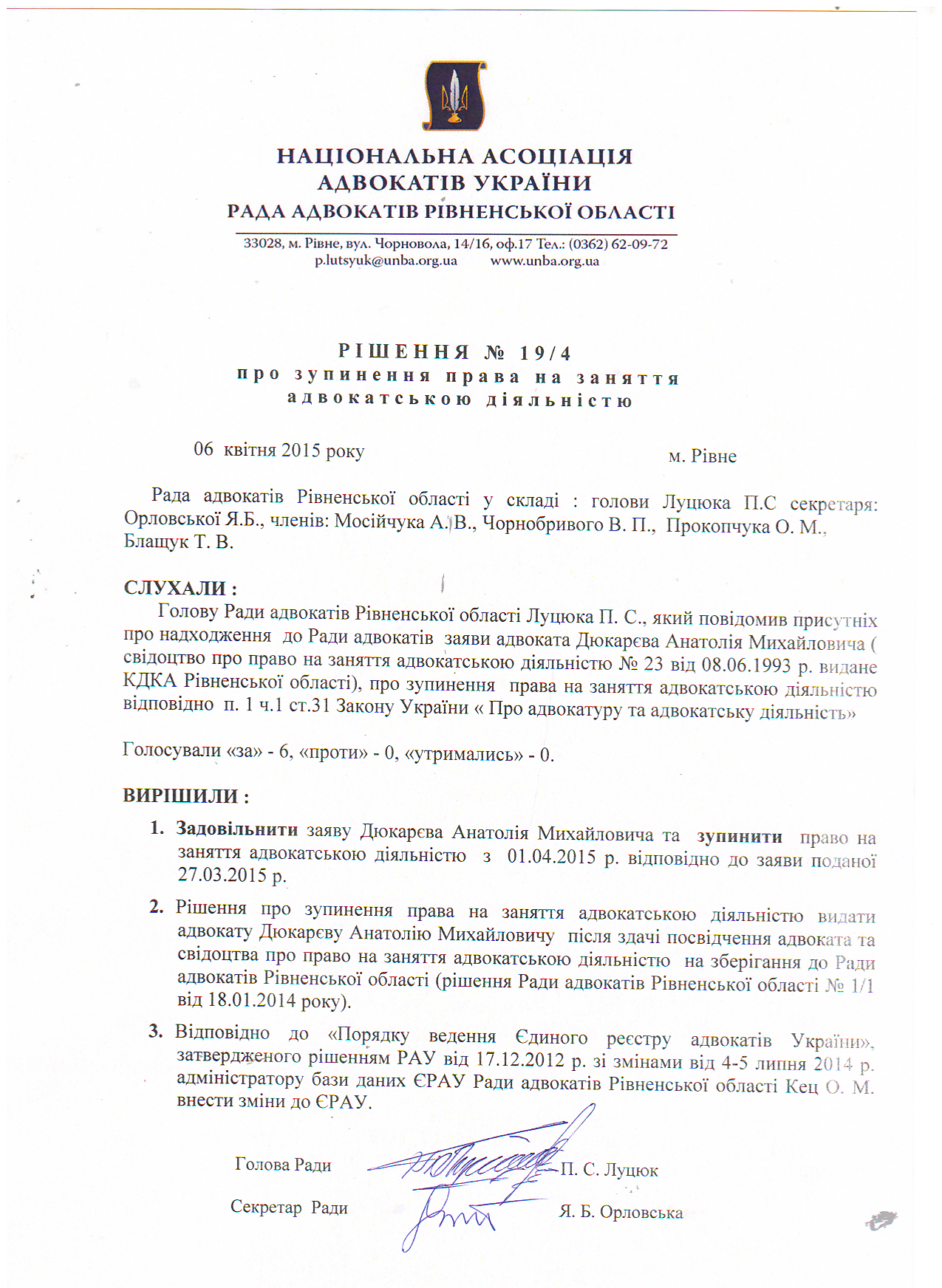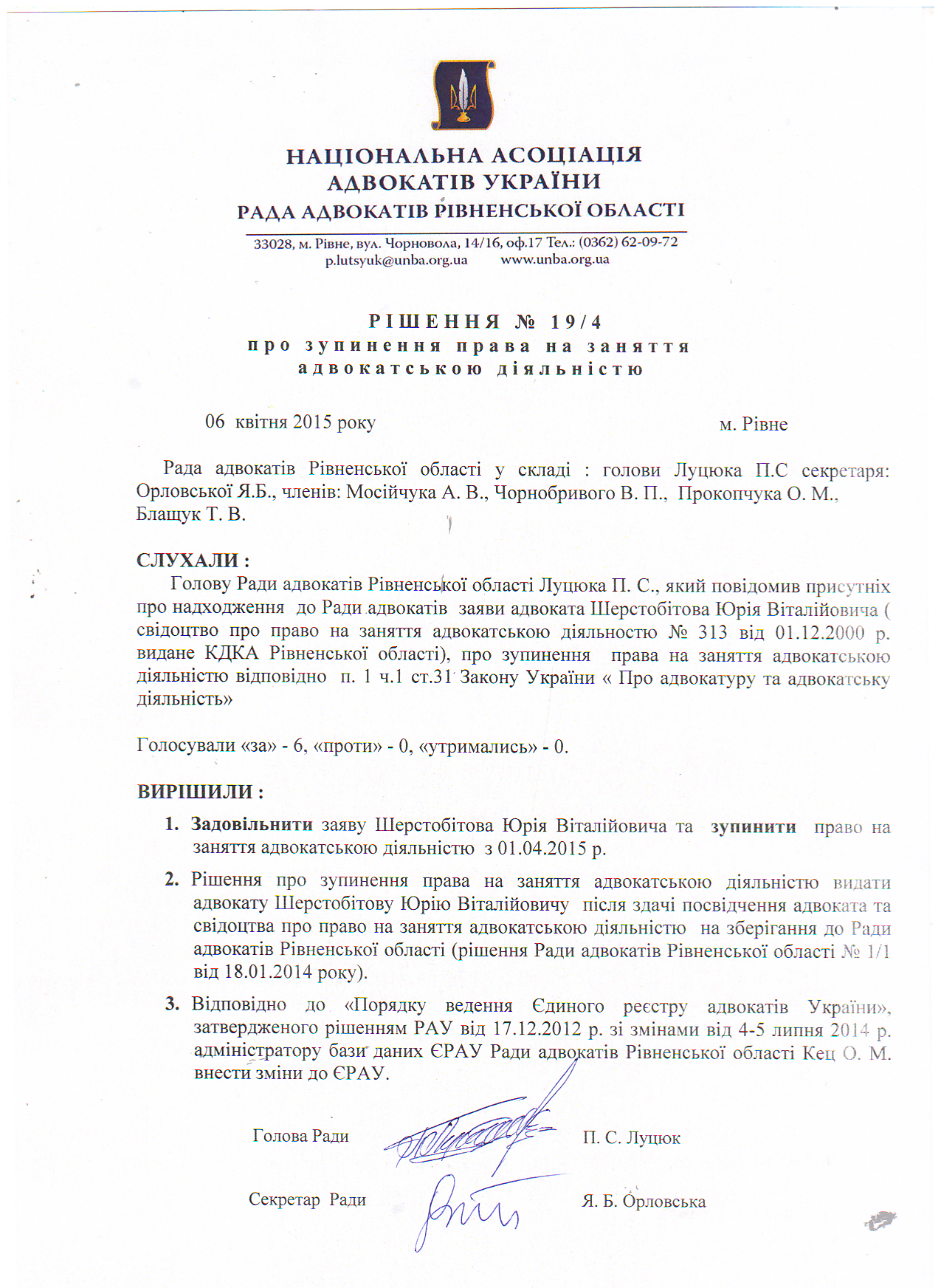 /rishennia/rishennia-rady/199-rishennia-19-4-pro-zupynennia-prava-na-zaniattia-advokatskoiu-diialnistiu