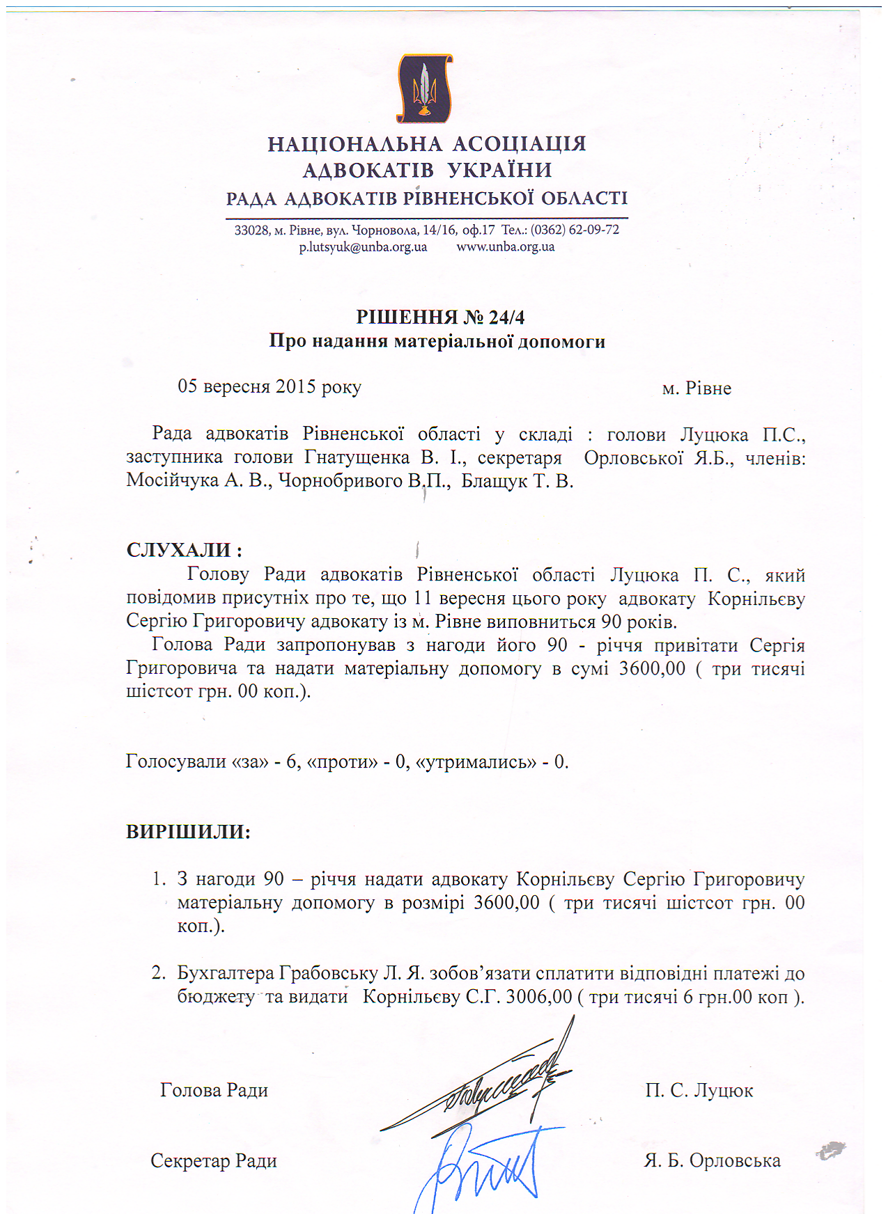 Рішення 24/4: Про надання матеріальної допомоги