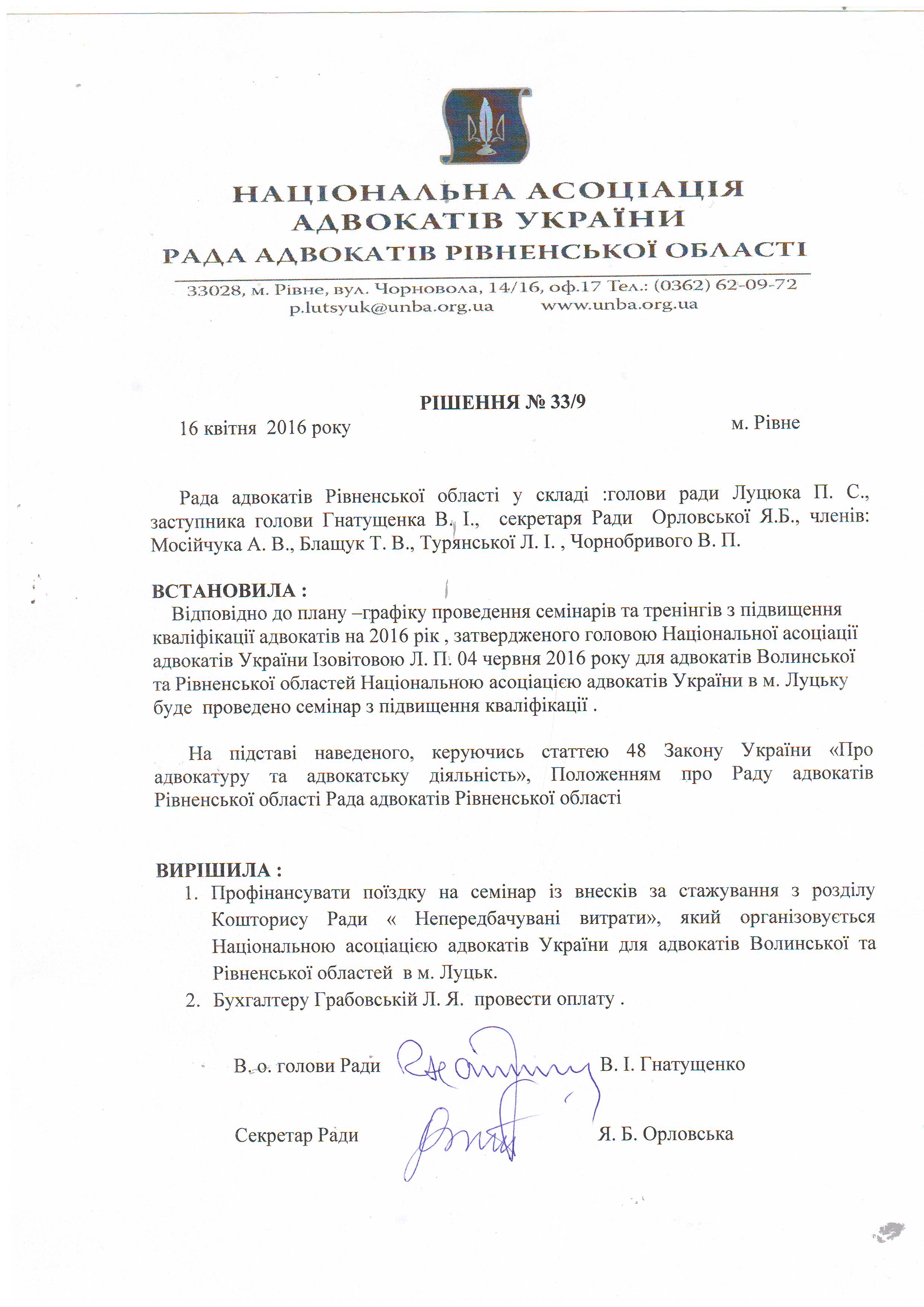 /rishennia/rishennia-rady/304-rishennia-33-9-rishennia-bez-nazvy-stosuietsia-finansuvannia-poizdky-advokativ-z-m-rivnoho-u-m-lutsk-dlia-uchasti-v-seminari-naau