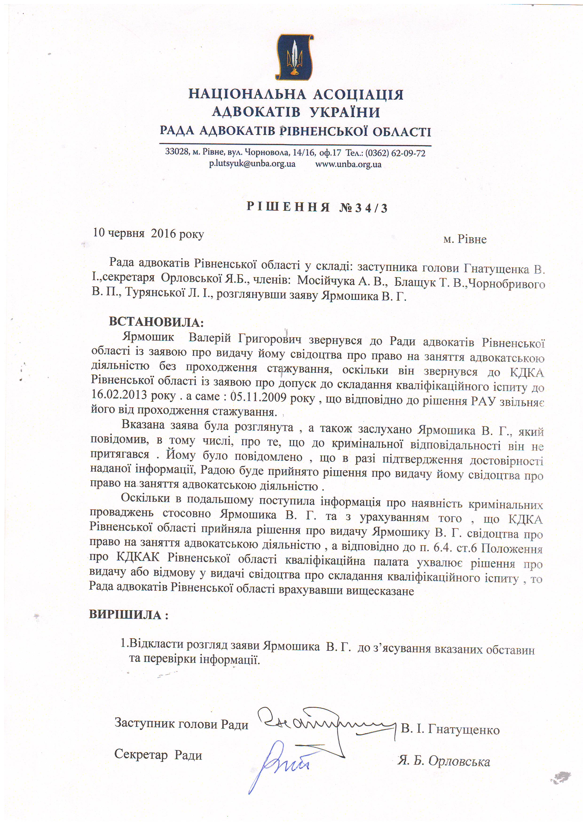 /rishennia/rishennia-rady/307-rishennia-34-3-rishennia-bez-nazvy-stosuietsia-vidkladennia-zaiavy-yarmoshyka-vh-shchodo-vydachi-svidotstva