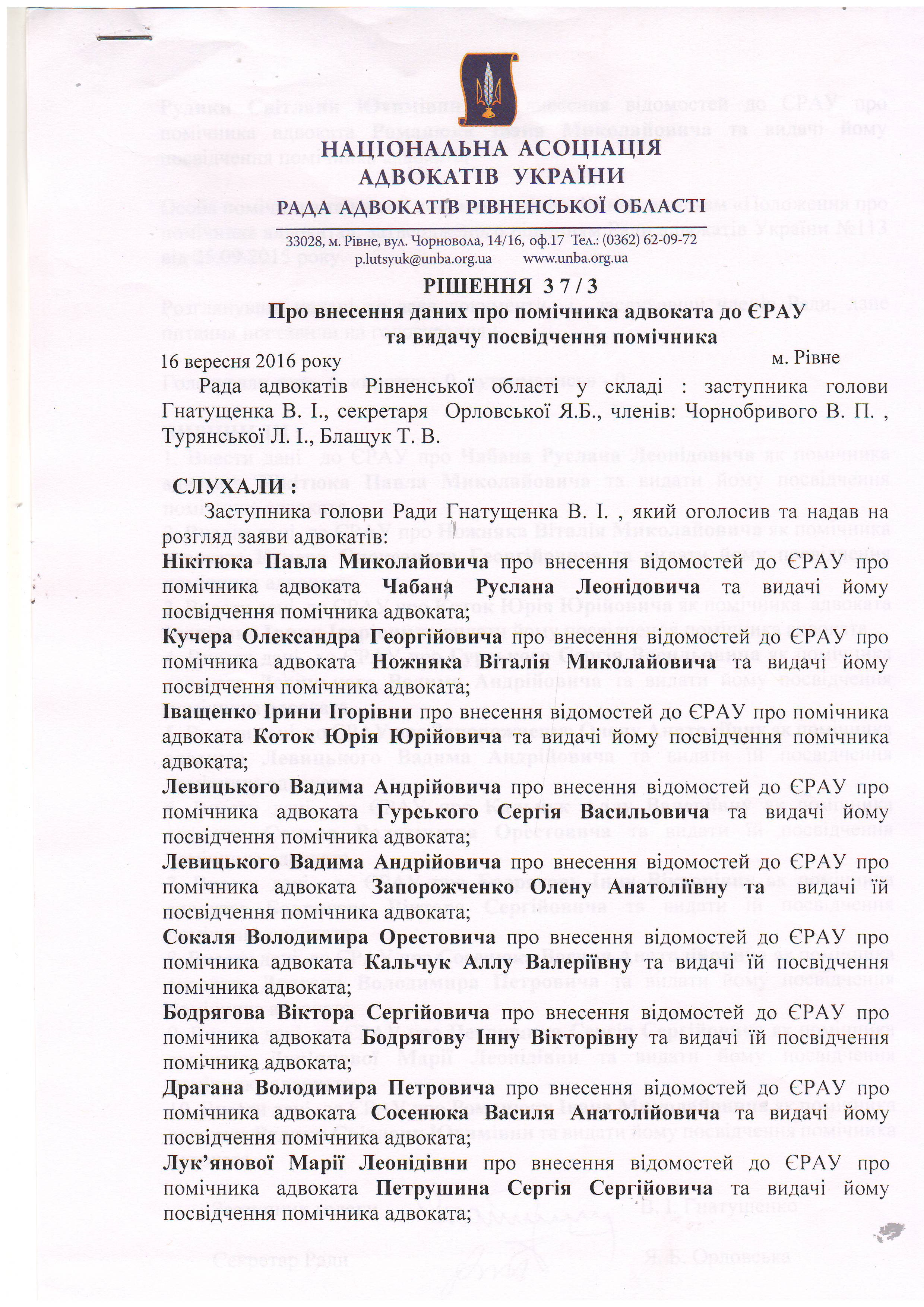 /rishennia/rishennia-rady/321-rishennia-37-3-pro-vnesennia-danykh-pro-pomichnyka-advokata-do-yerau-ta-vydachu-posvidchennia-pomichnyka