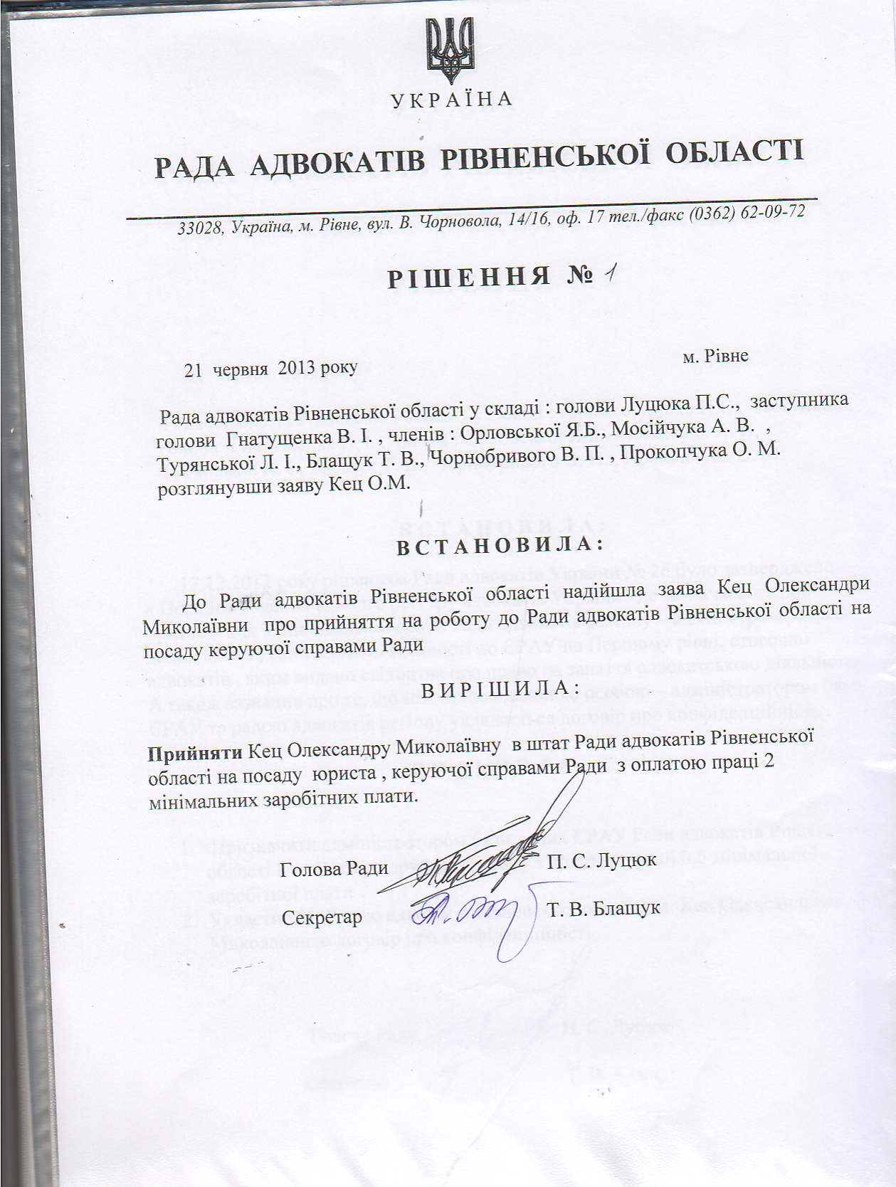 Рішення 1: без назви (стосується прийняття на посаду юриста ради)