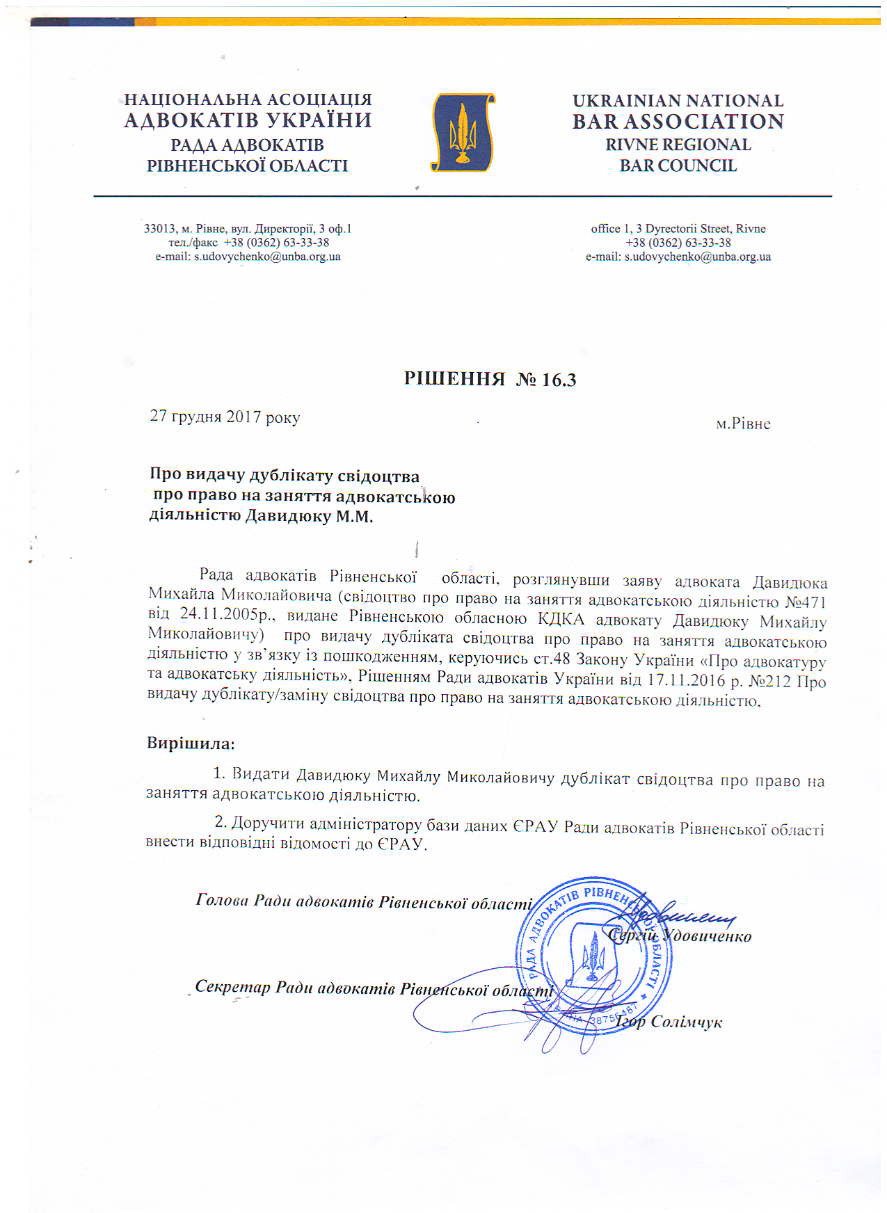 /rishennia/rishennia-rady/653-rishennia-163-pro-vydachu-dublikatu-svidotstva-pro-pravo-na-zaniattia-advokatskoiu-diialnistiu-davydiuku-mm