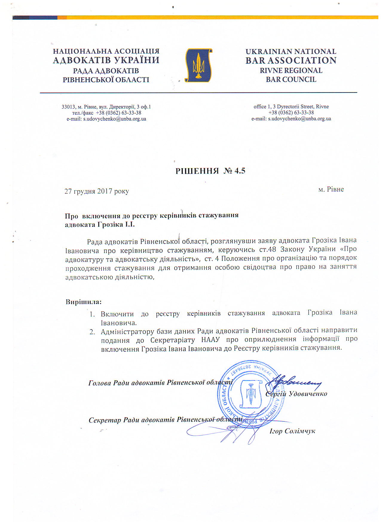 /rishennia/rishennia-rady/672-rishennia-4-5-pro-vkliuchennia-do-reiestru-kerivnykiv-stazhuvannia-advokata-hrozika-ii