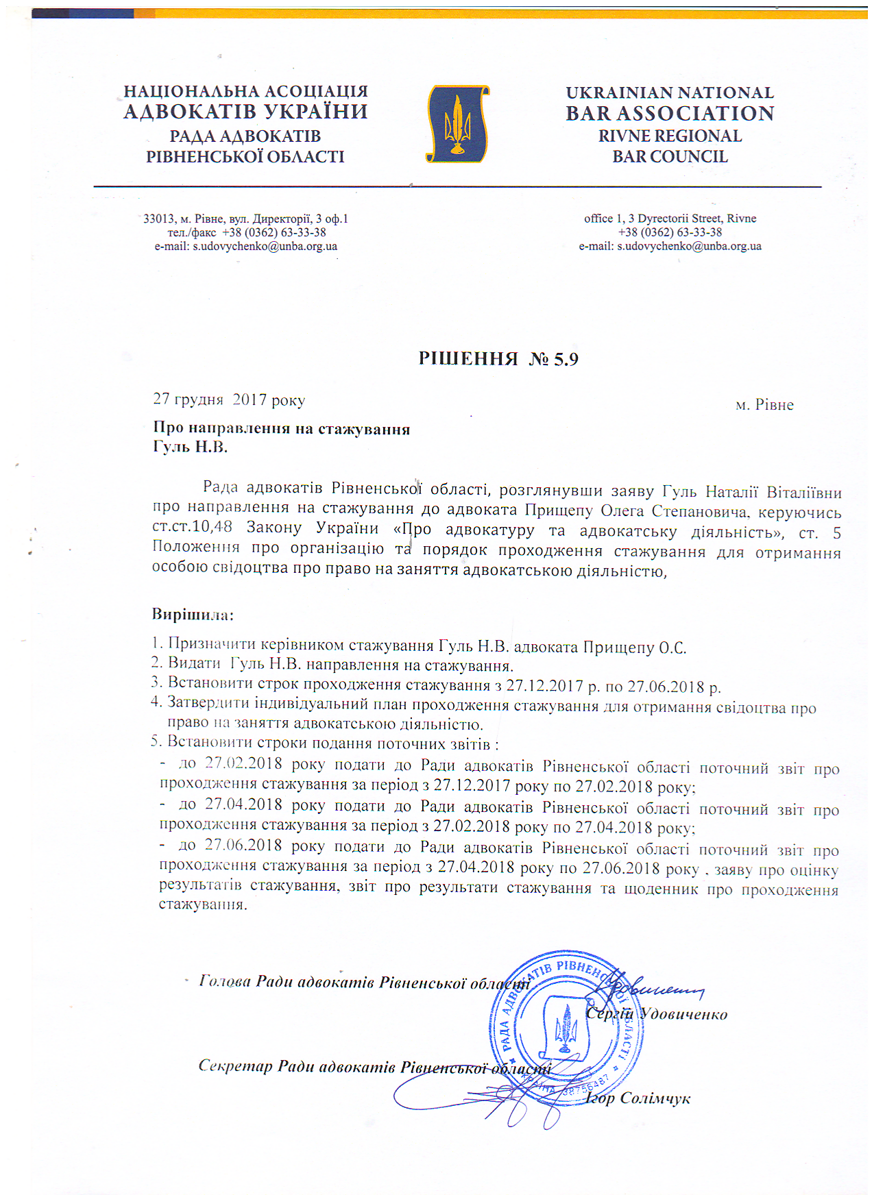 Рішення 5/9: Про направлення на стажування Гуль Н.В.