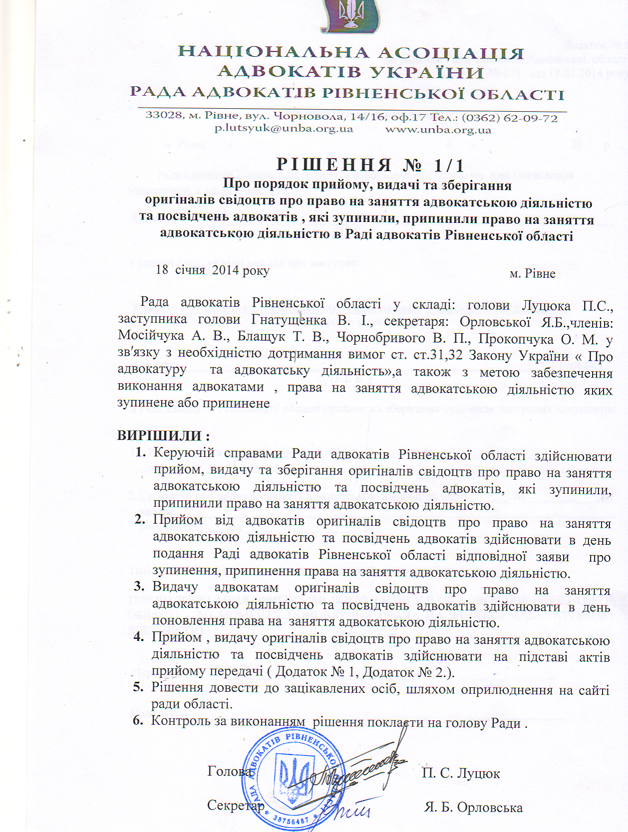 /rishennia/rishennia-rady/69-rishennia-1-1-pro-poriadok-pryiomu-vydachi-ta-zberihannia-oryhinaliv-svidotstv-pro-pravo-na-zaniattia-advokatskoiu-diialnistiu-ta-posvidchen-advokativ-iaki-zupynyly-prypynyly-pravo-na-zaniattia-advokatskoiu-diialnistiu-v-radi-advokativ-rivnenskoi-oblasti