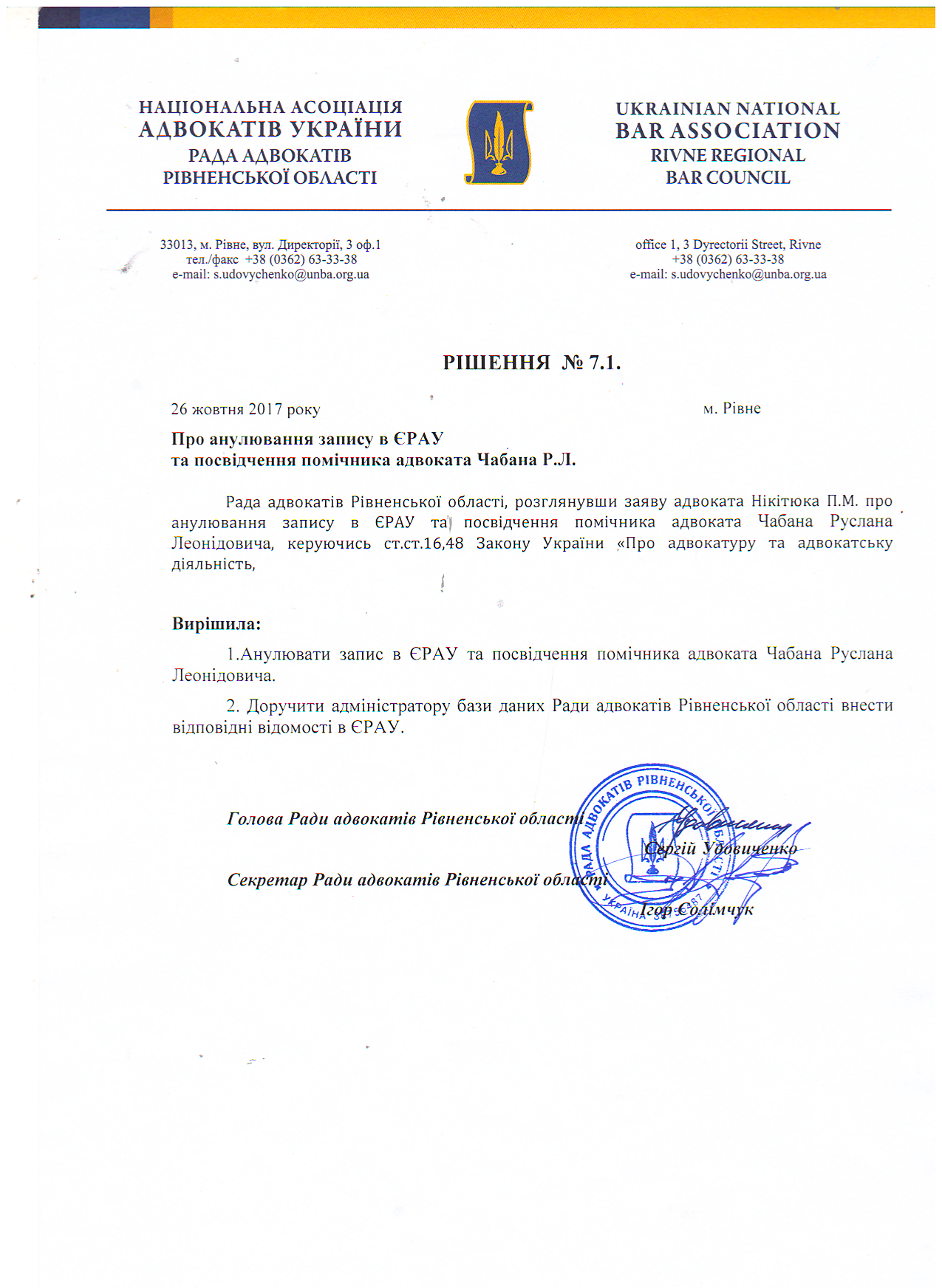 /rishennia/rishennia-rady/694-rishennia-7-1-pro-anuliuvannia-zapysu-v-yerau-ta-posvidchennia-pomichnyka-advokata-chabana-rl