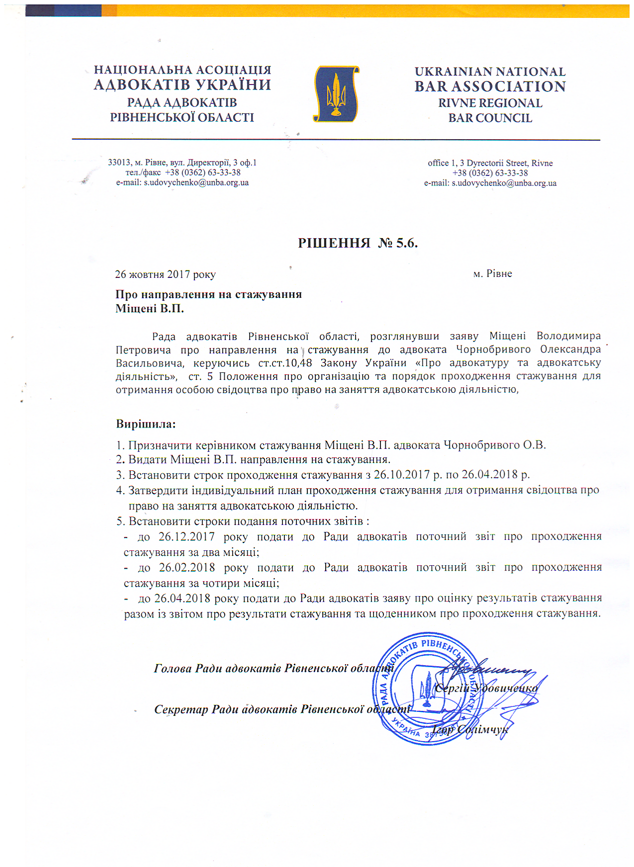 Рішення 5/6: Про направлення на стажування Міщені В.П.