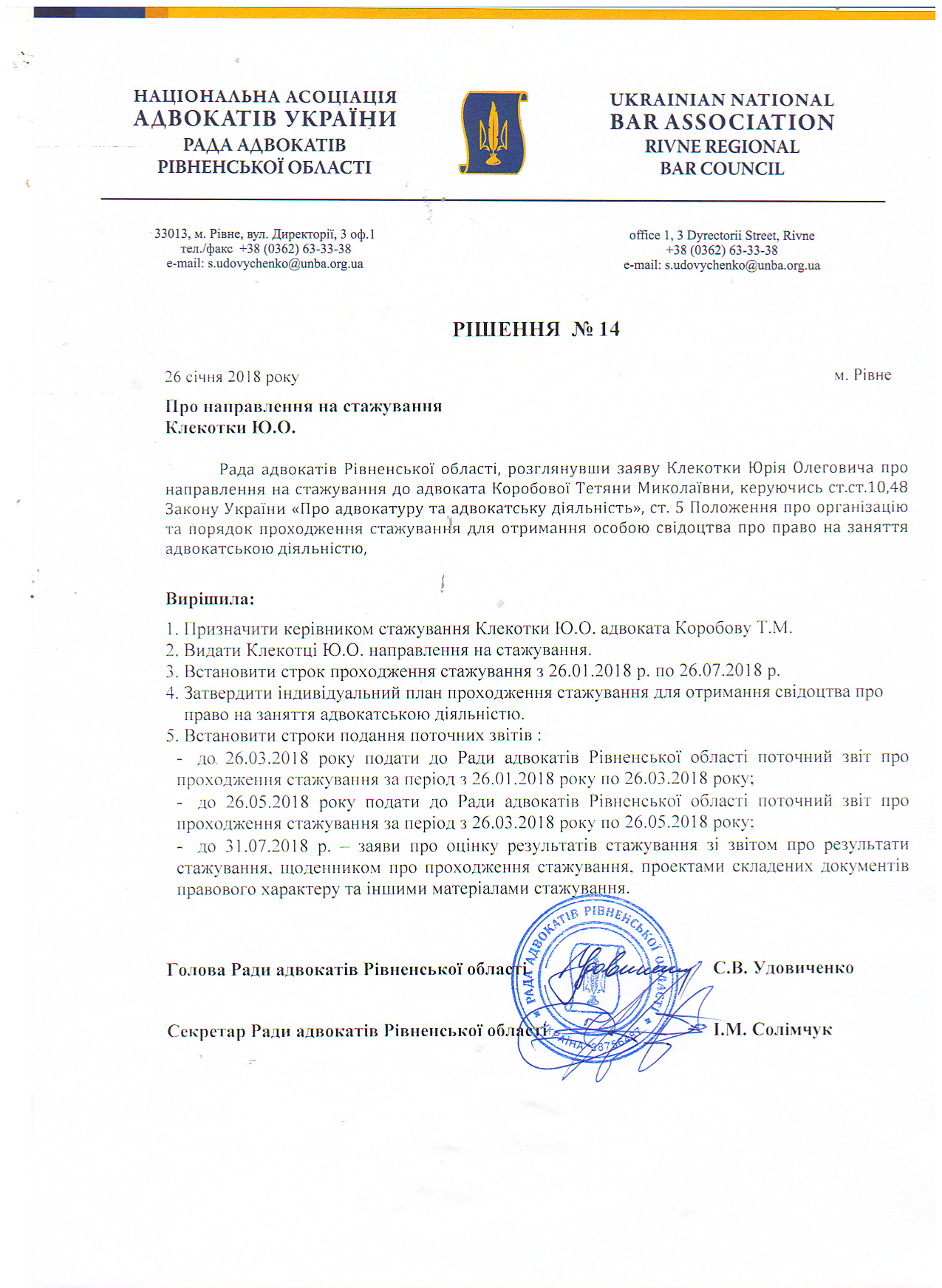 /rishennia/rishennia-rady/748-rishennia-14-pro-napravlennia-na-stazhuvannia-klekotky-yuo-vid-26012018
