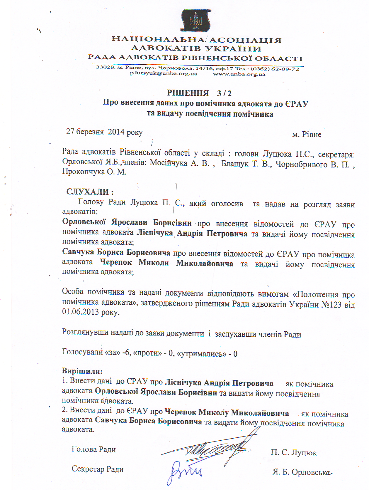 /rishennia/rishennia-rady/78-rishennia-3-2-pro-vnesennia-danykh-pro-pomichnyka-advokata-do-yerau-ta-vydachu-posvidchennia-pomichnyka