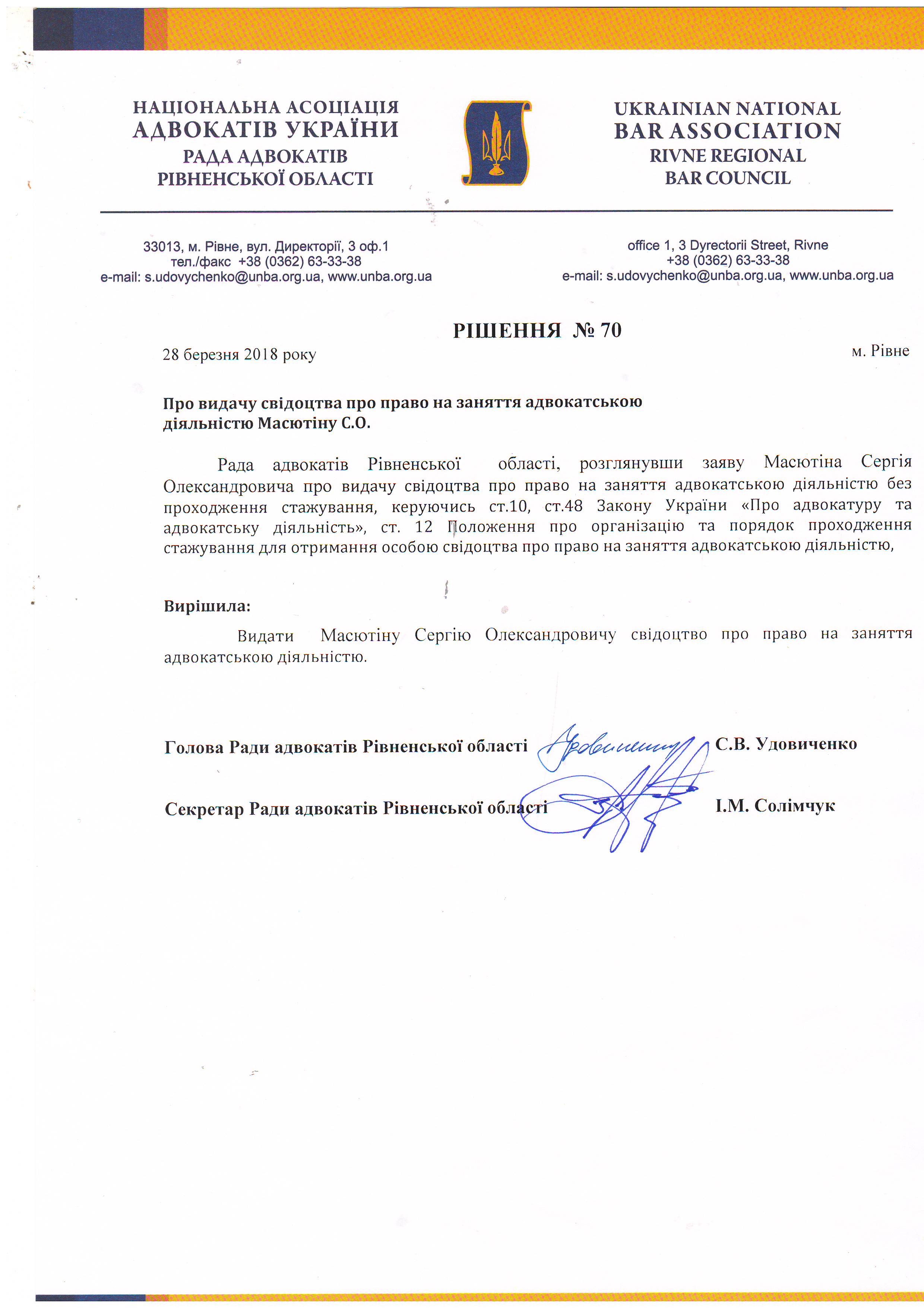 /rishennia/rishennia-rady/804-rishennia-70-pro-vydachu-svidotstva-pro-pravo-na-zaniattia-advokatskoiu-diialnistiu-masiutinu-so-vid-28032018-r