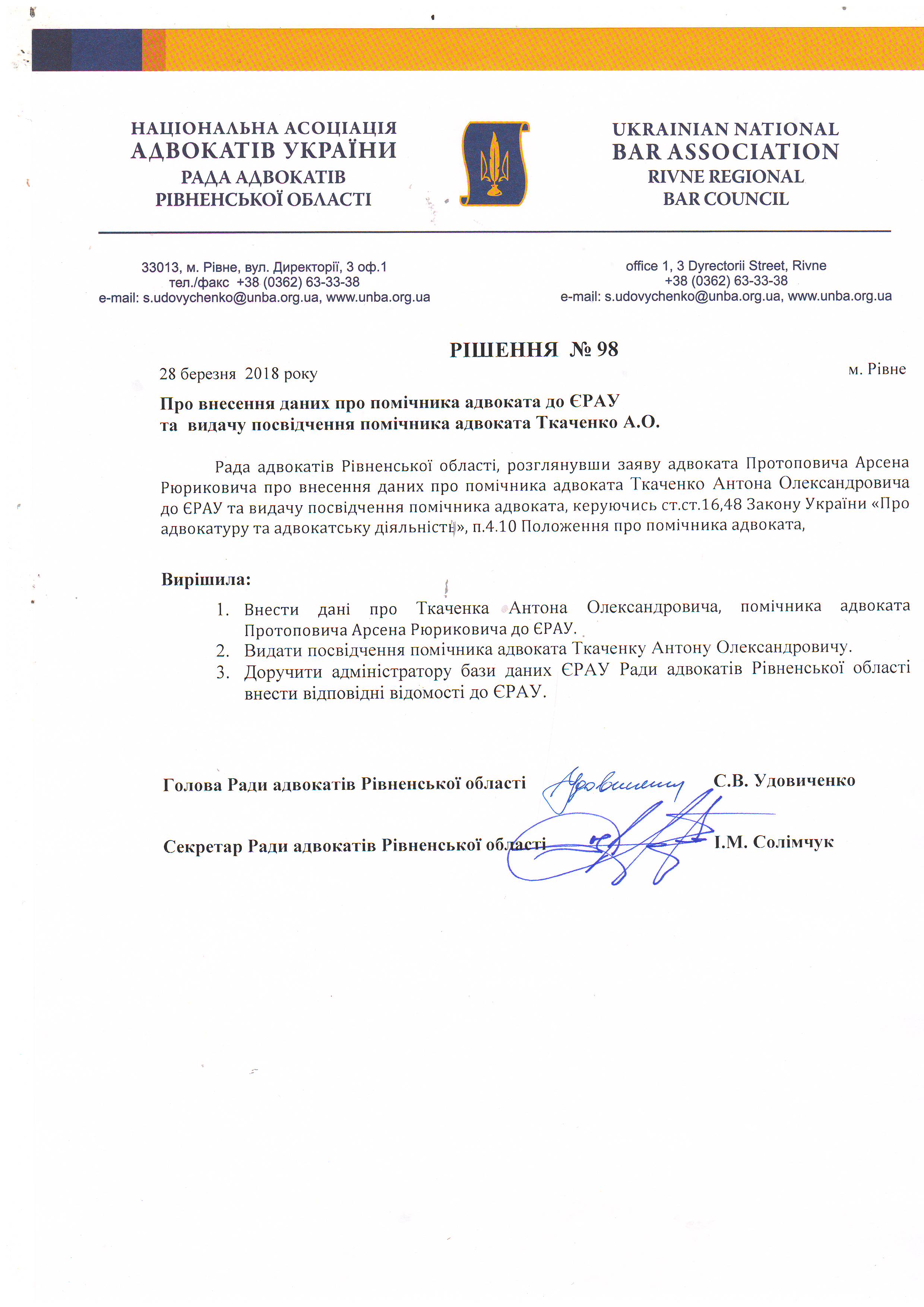 /rishennia/rishennia-rady/832-rishennia-98-pro-vnesennia-danykh-pro-pomichnyka-advokata-do-yerau-ta-vydachu-posvidchennia-pomichnyka-advokata-tkachenko-ao-vid-28032018-r