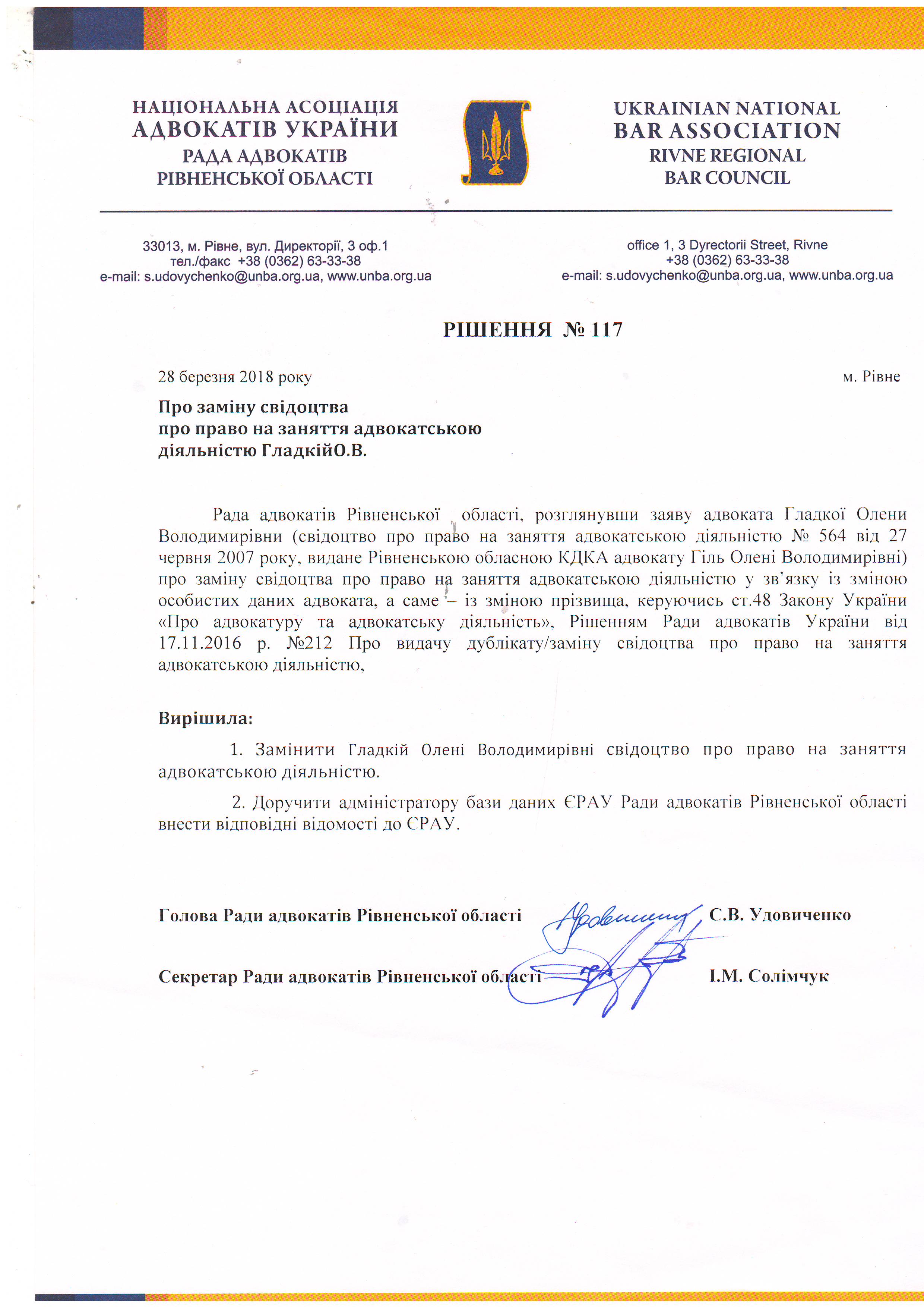 /rishennia/rishennia-rady/853-rishennia-117-pro-zaminu-svidotstva-pro-pravo-na-zaniattia-advokatskoiu-diialnistiu-hladkii-ov-vid-28032018-r