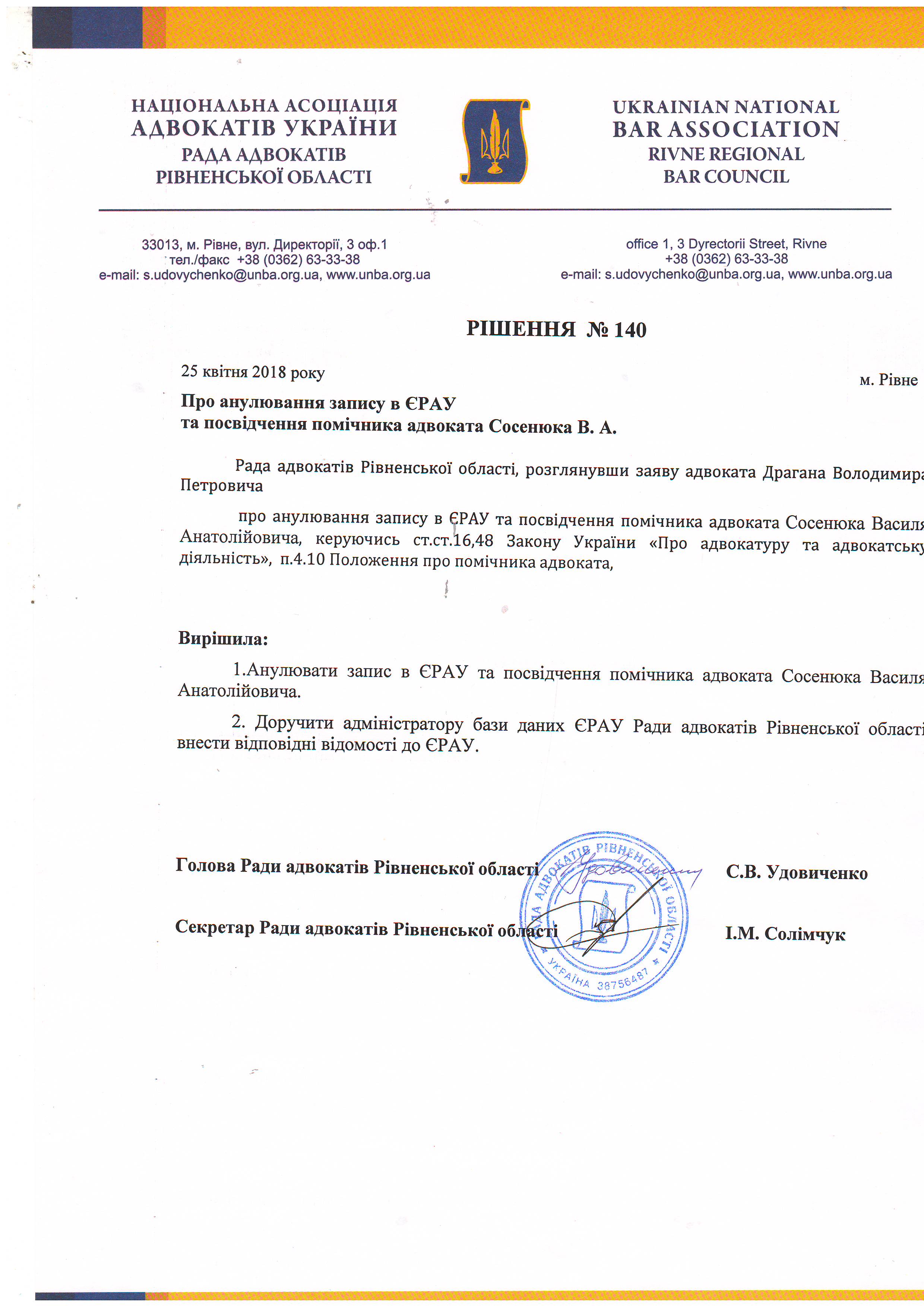 /rishennia/rishennia-rady/877-rishennia-140-pro-anuliuvannia-zapysu-v-yerau-ta-posvidchennia-pomichnyka-advokata-soseniuka-va-vid-25042018-r