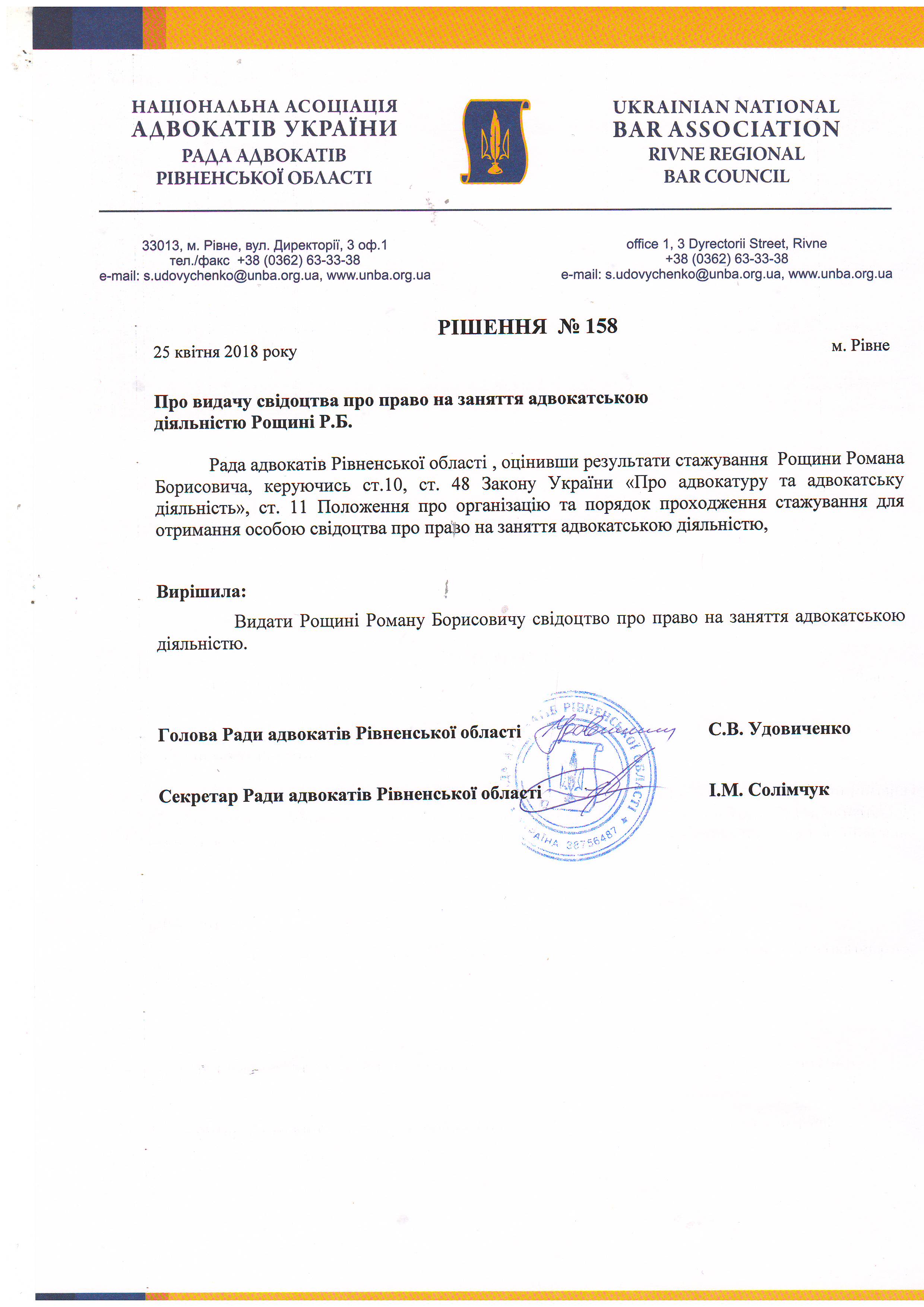 /rishennia/rishennia-rady/895-rishennia-158-pro-vydachu-svidotstva-pro-pravo-na-zaniattia-advokatskoiu-diialnistiu-roshchyni-rb-vid-25042018-r