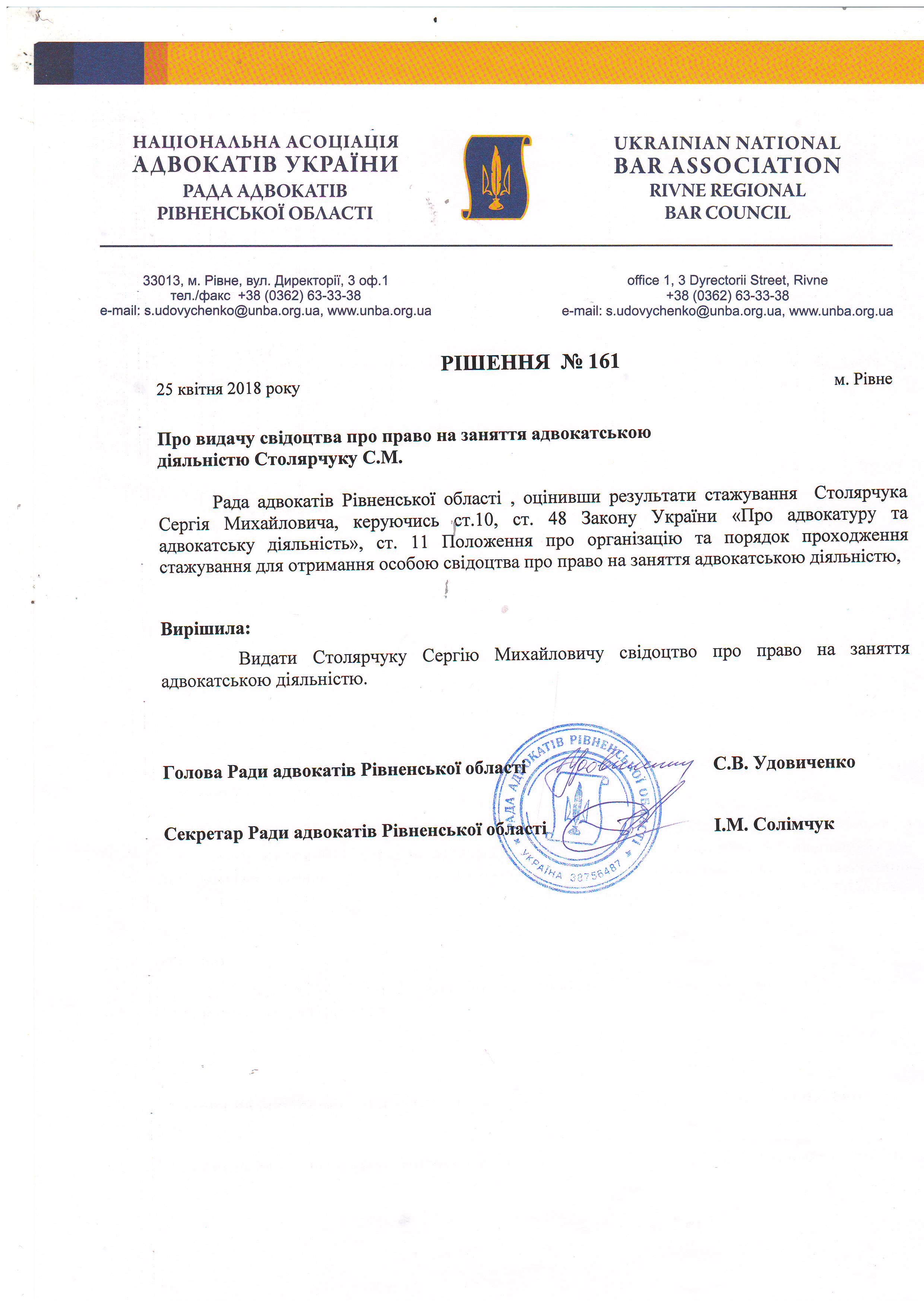 /rishennia/rishennia-rady/898-rishennia-161-pro-vydachu-svidotstva-pro-pravo-na-zaniattia-advokatskoiu-diialnistiu-stoliarchuku-sm-vid-25042018-r