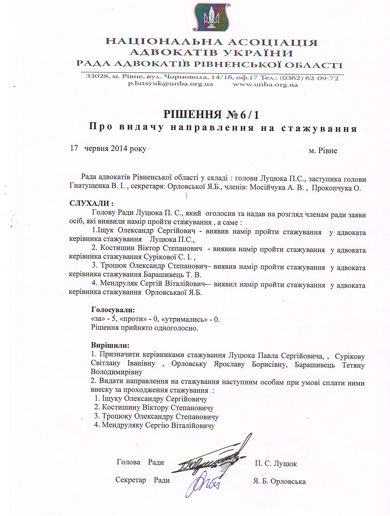 Рішення 6/1: Про видачу направлення на стажування