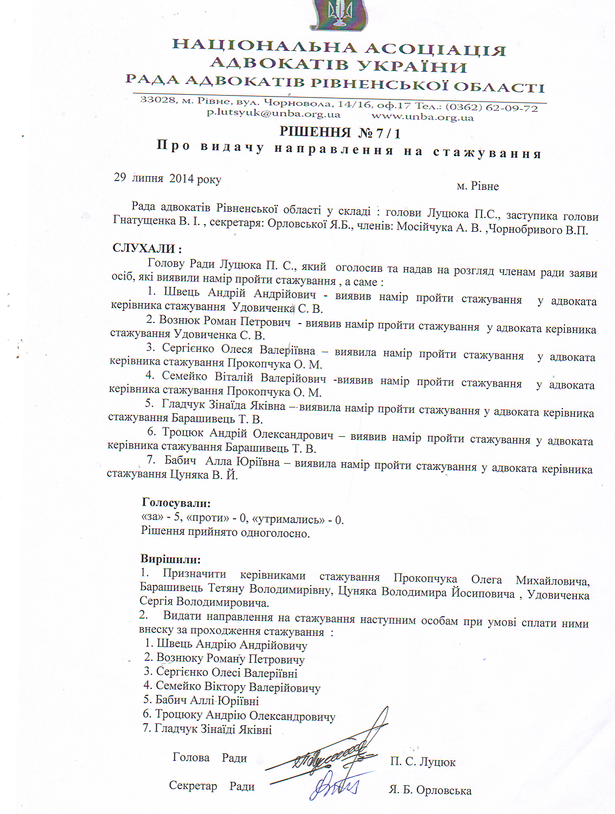 Рішення 7/1: Про видачу направлення на стажування