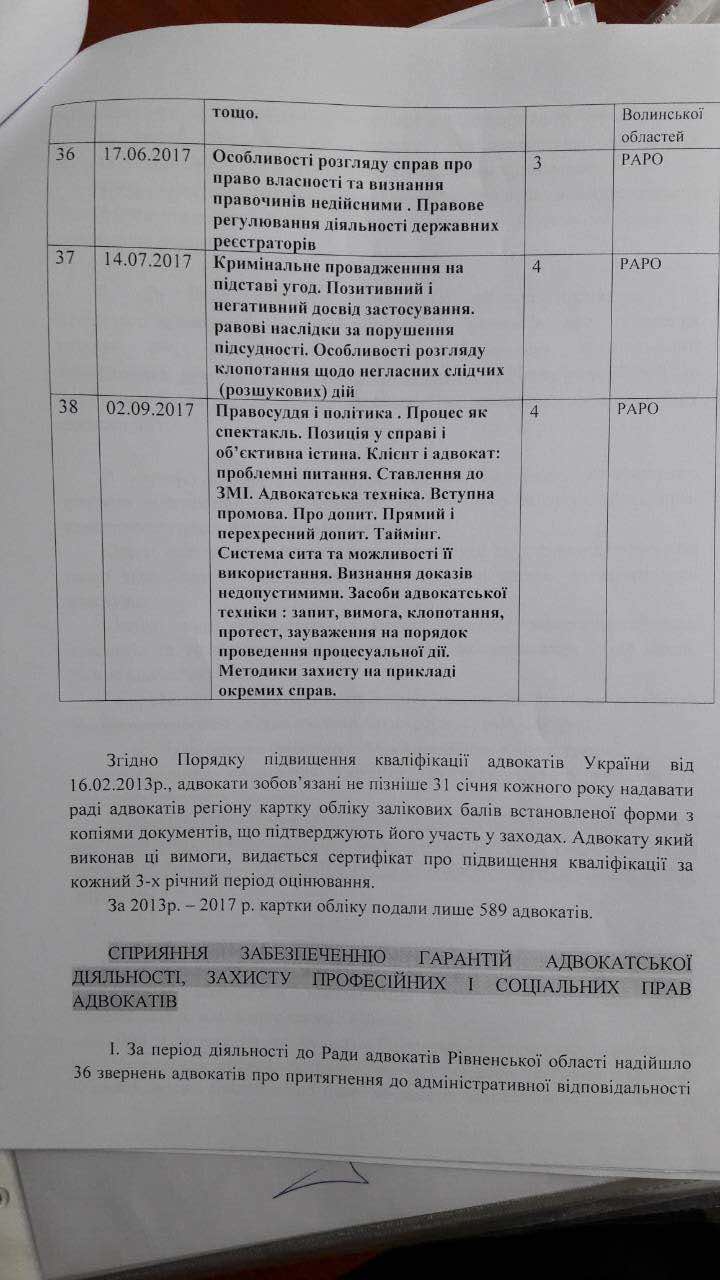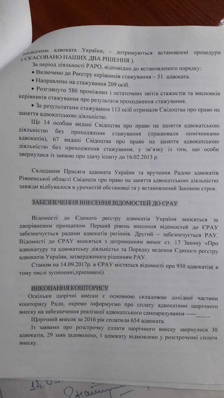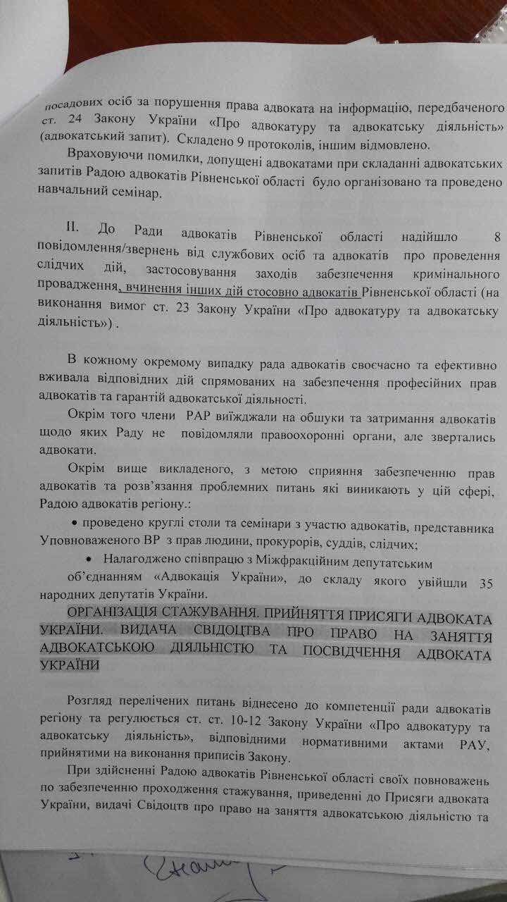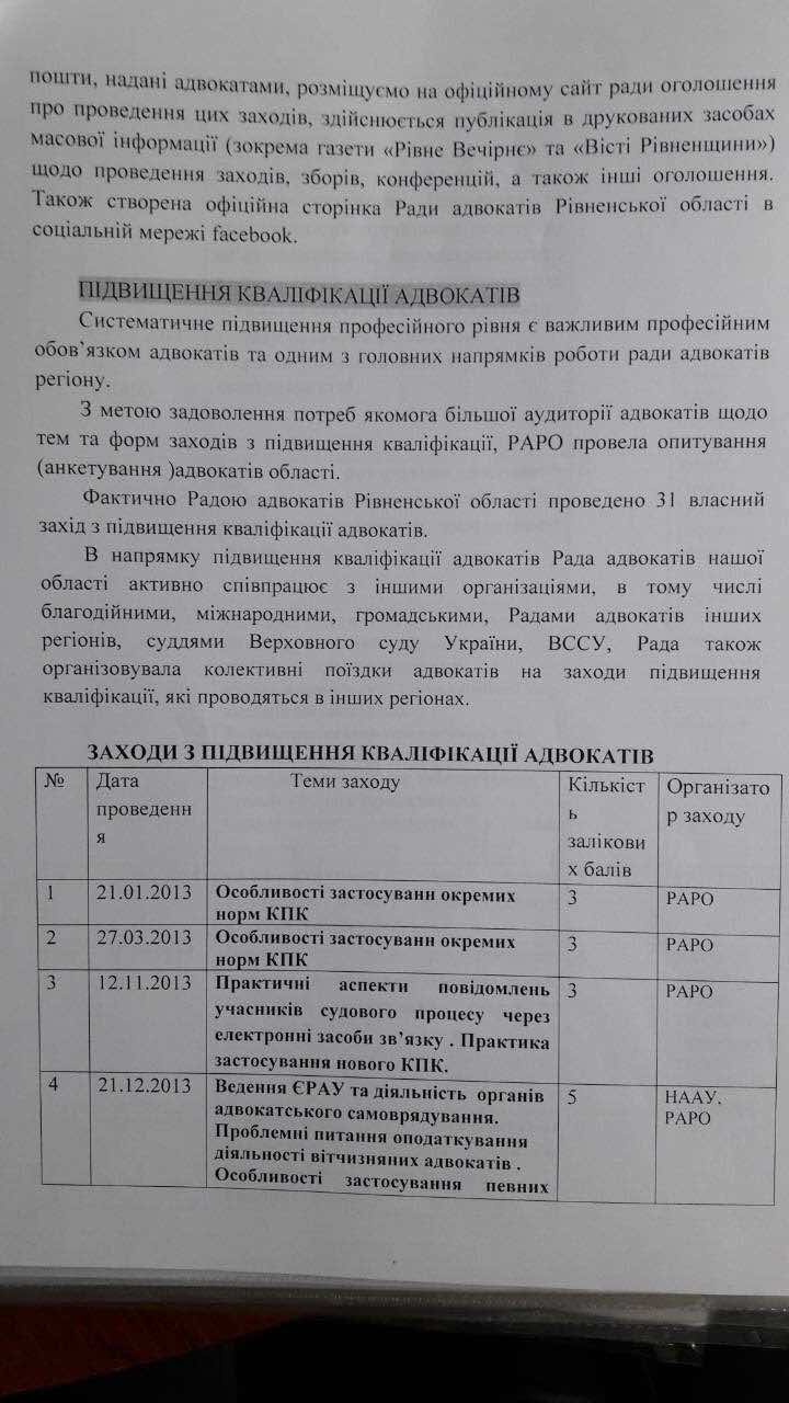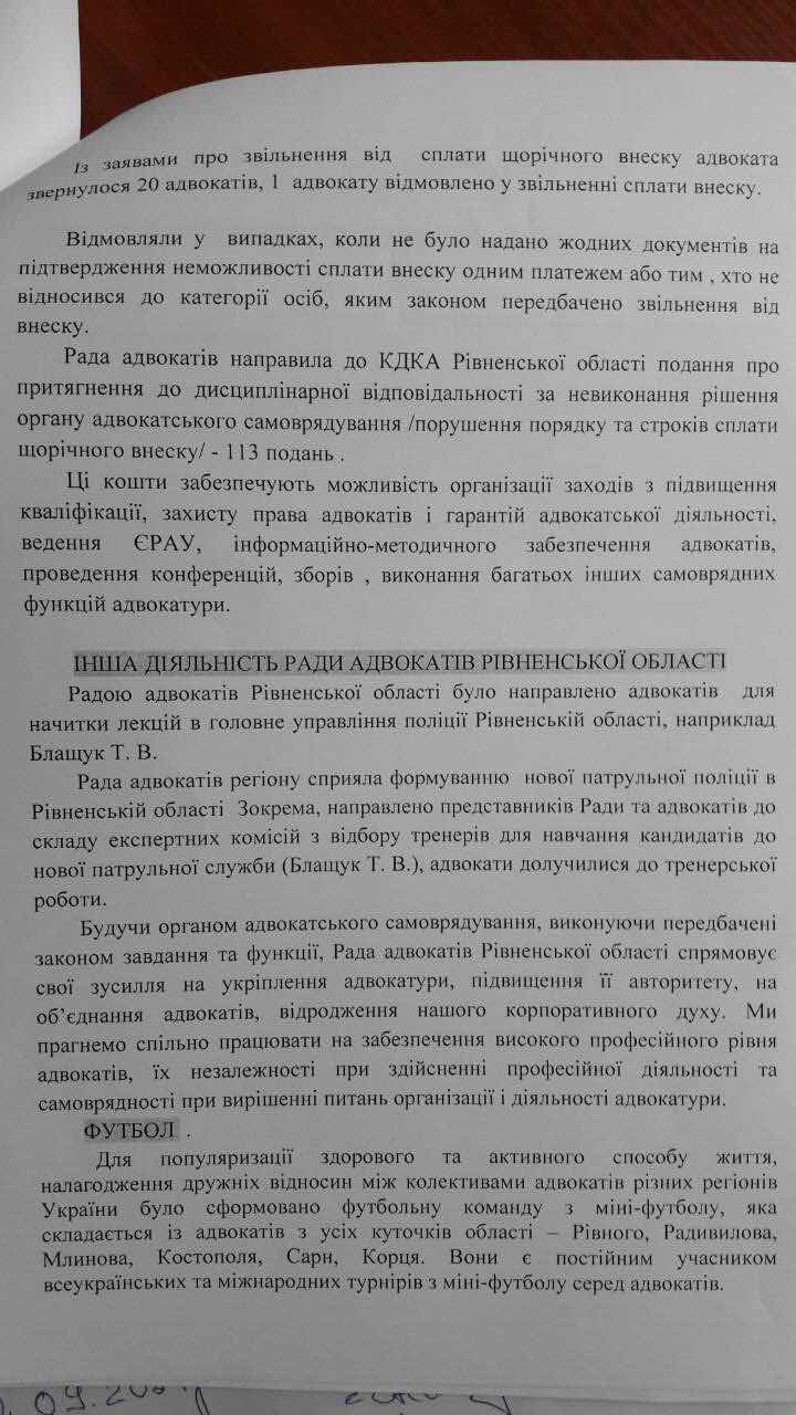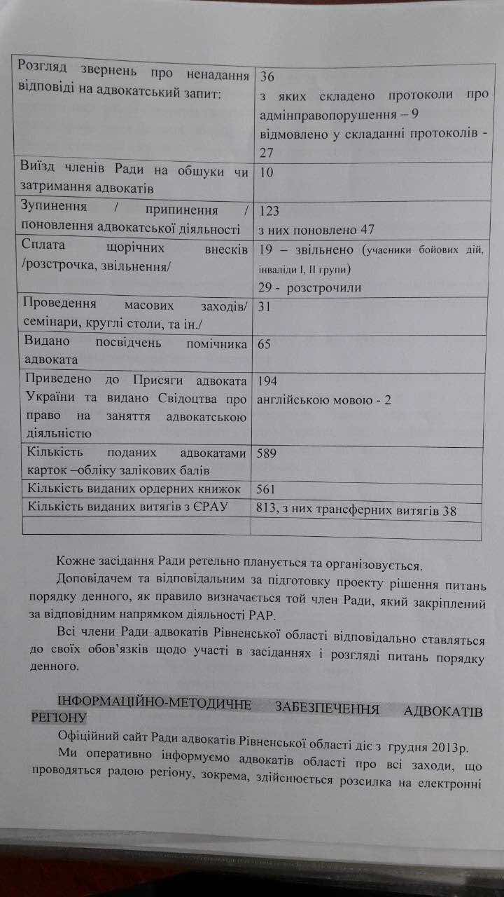 Звіт про діяльність Ради адвокатів Рівненської області з 06062013 по 14092017